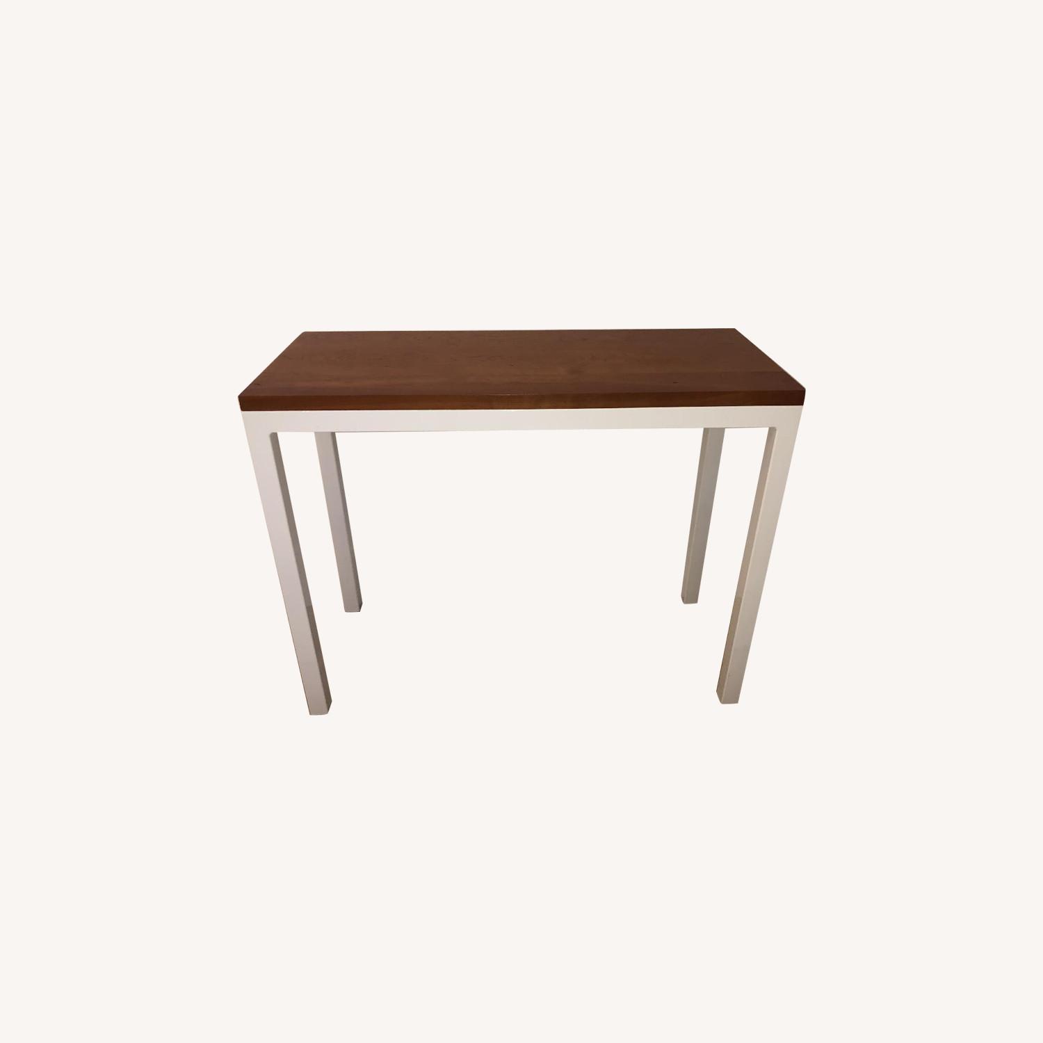 Seller's Notes:Room & Board custom-made desk with Parsons frame and custom solid cherry wood surface. Perfect size for a lamp and laptop in a smaller home office or workspace. Could also work well as a console table in a hallway. In pristine condition.