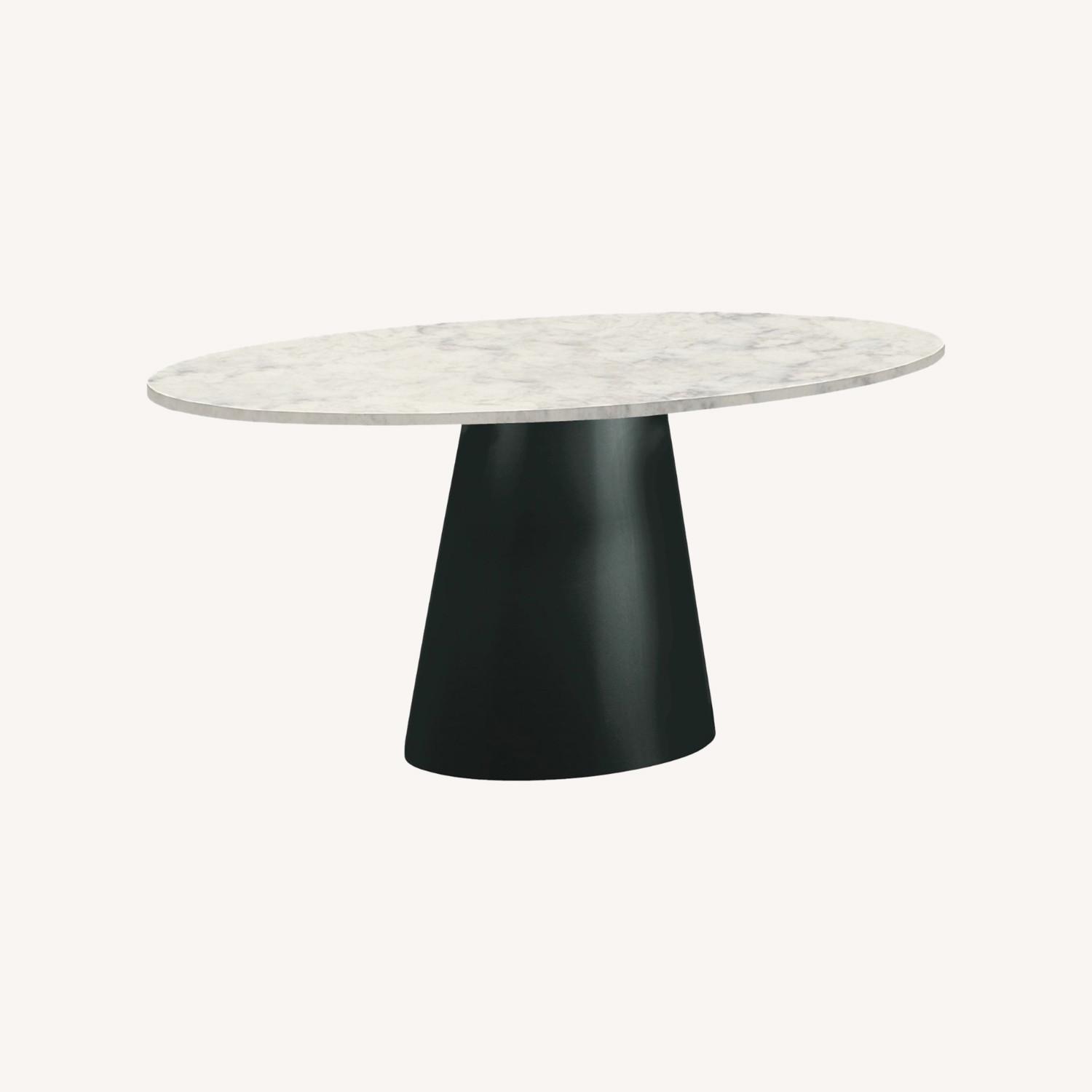 Seller's Notes:Like-new marble quartz topped dining table with onyx base comfortably seats 6 and is a breeze to clean
