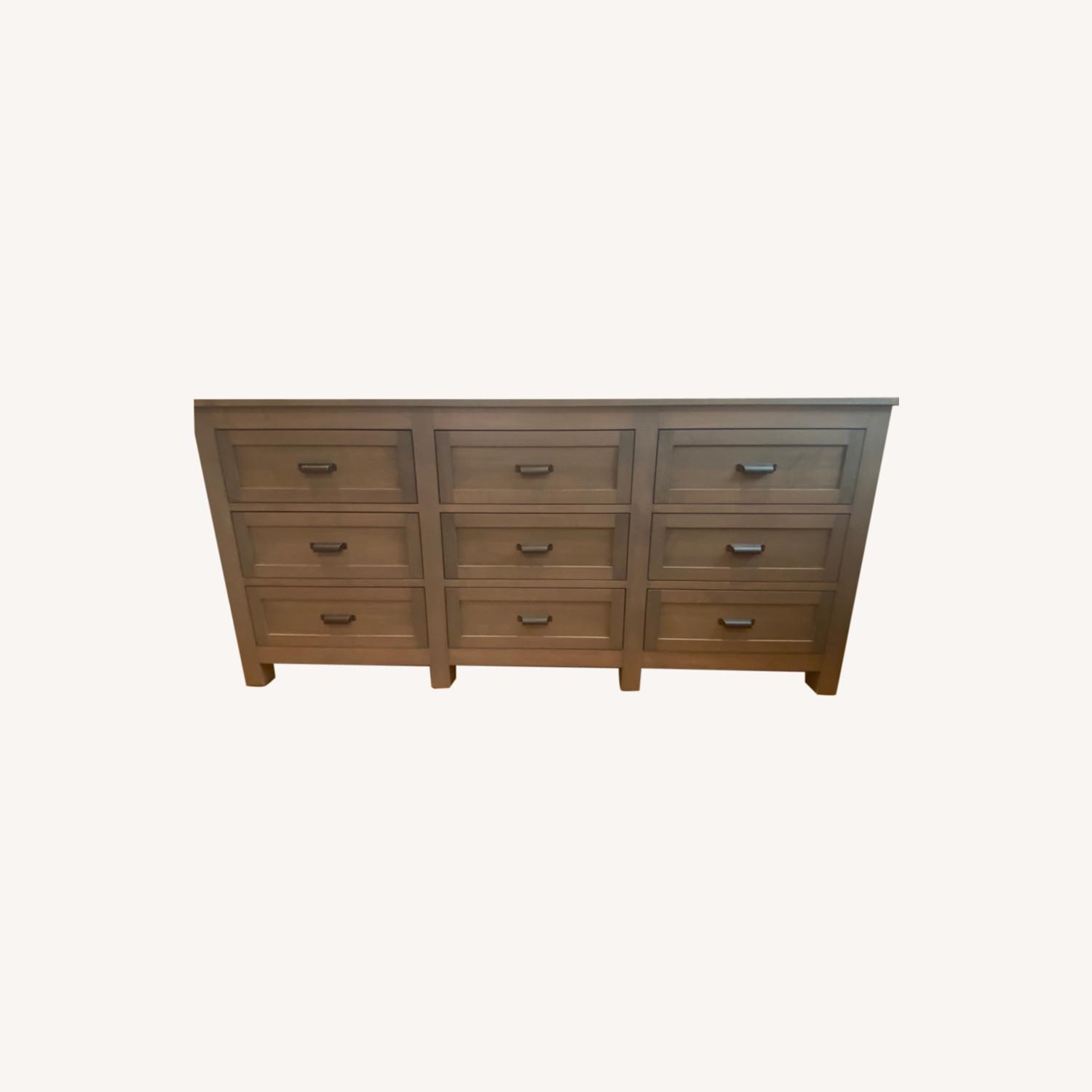 Seller's Notes:Bennett 82w 38h 18.5d Nine-Drawer Dresser WOOD: maple with shell stain Also selling the matching night stands