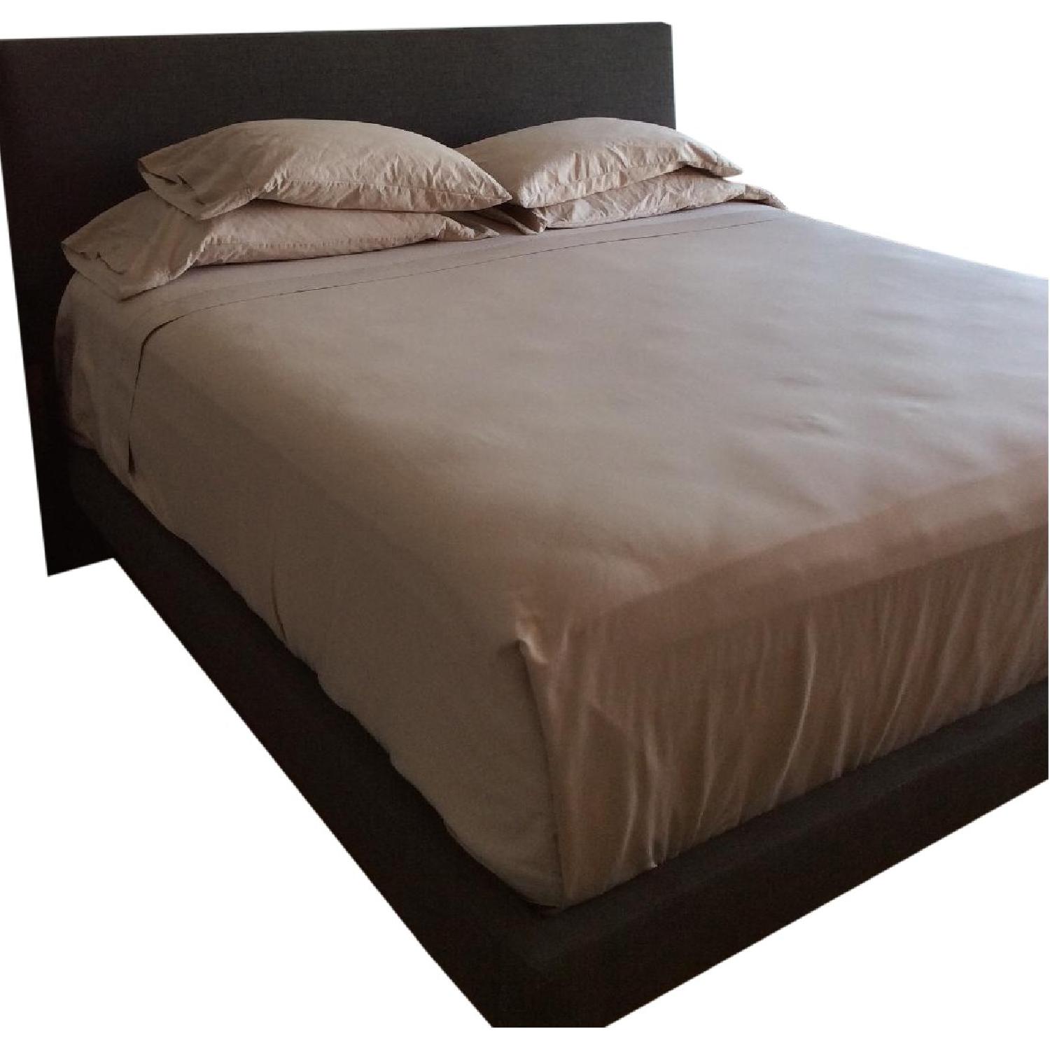 Seller's Notes:This item was purchased in May of 2015 to furnish a corporate apartment that was barely used. Basically brand new piece that has no wear or tear. Dimensions: 82"w 89"d 46"h Headboard Height: 46"h Footboard Height: 13"h Floor to Bottom: 11.5"h Leg Thickness: 1.5"w Includes: complete bed frame Legs: all are removable Considerations:box spring not recommended The Ella bed features clean lines and a contoured headboard that bring soft sophistication to your bedroom. Steel legs contrast beautifully with the upholstered frame of this elegant bed. No box spring required. http://www.roomandboard.com/catalog/bedroom/beds/ella-bed
