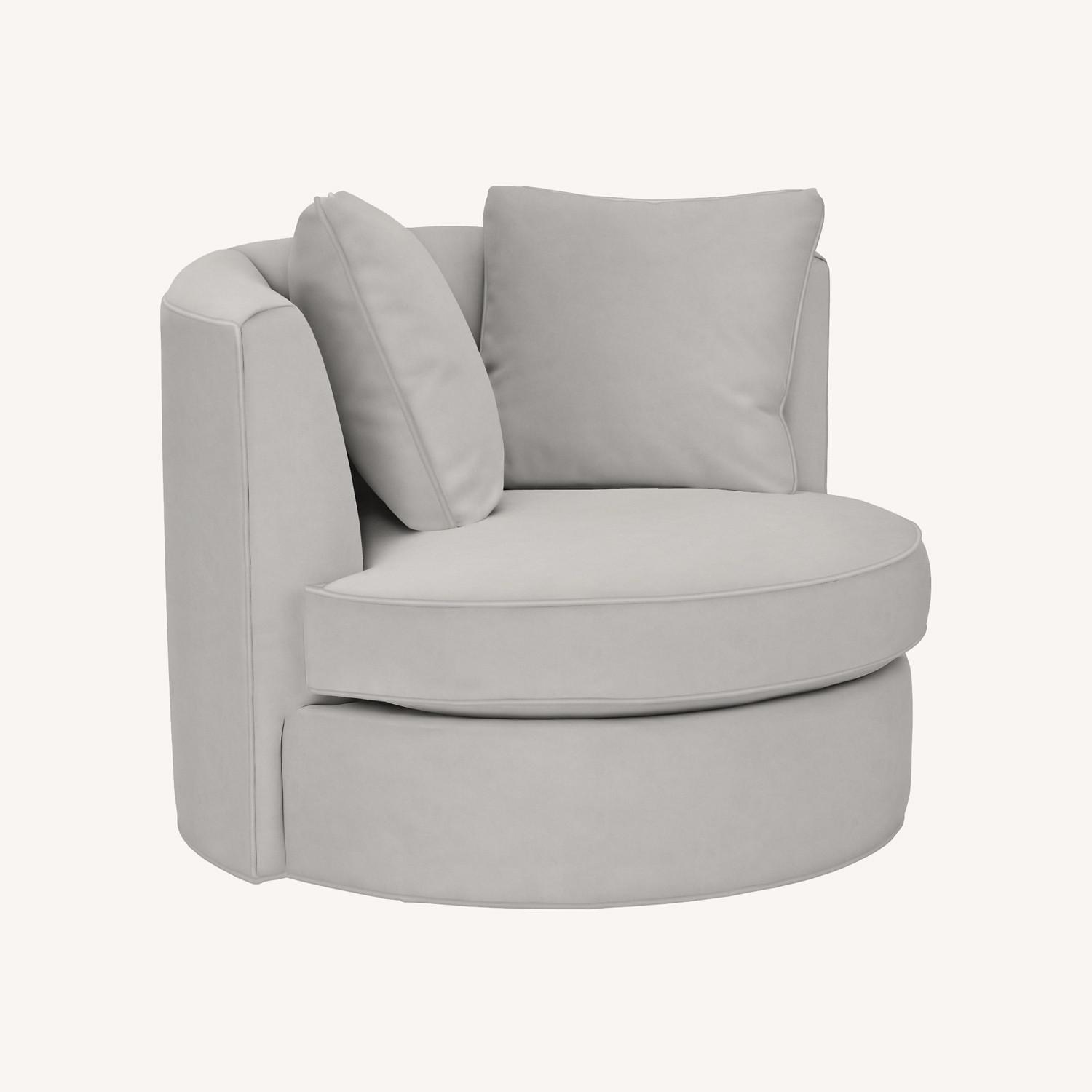 Seller's Notes:Lightly used very comfortable grey velvet swivel chair from Room & Board