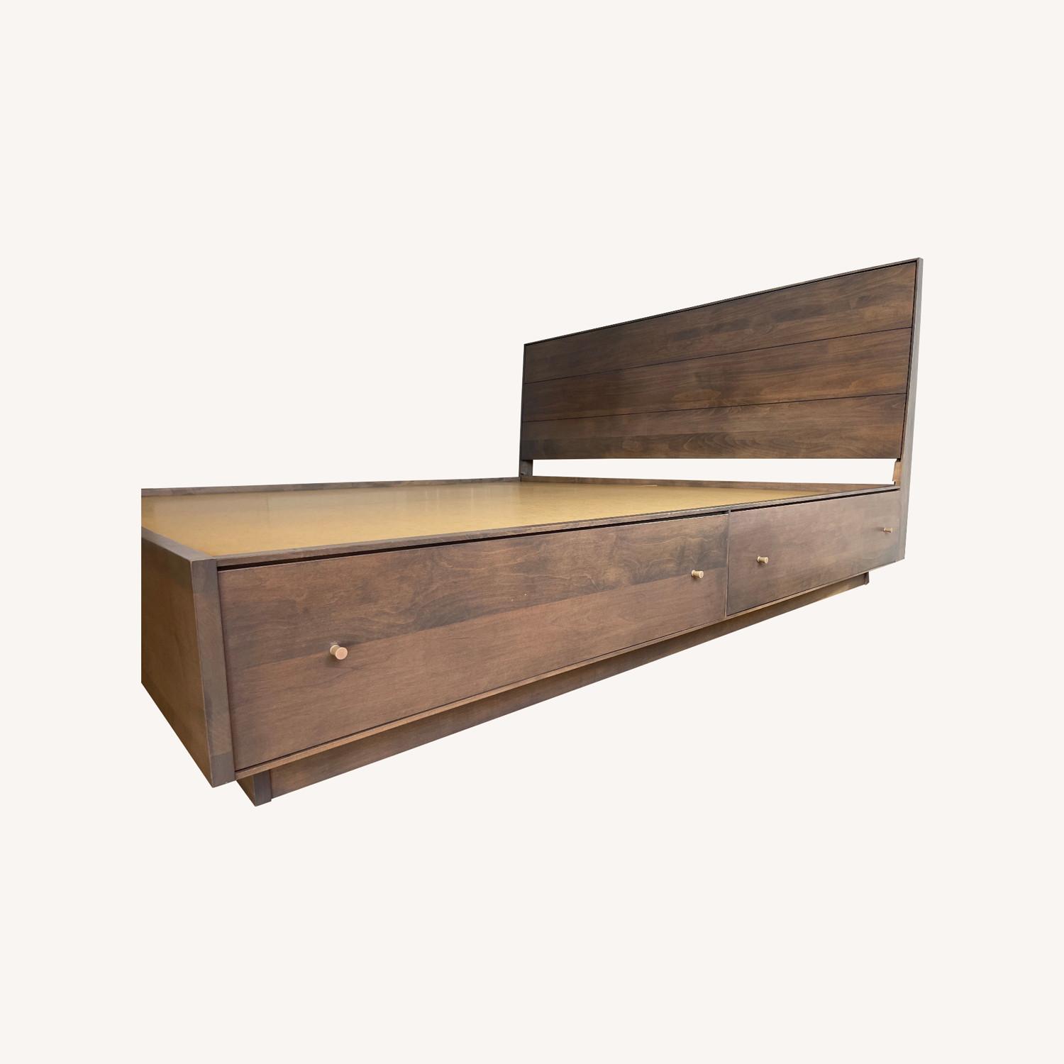 Seller's Notes:Room & Board brand king size Hudson Bed with Storage Drawers in good condition with excellent storage space (4 drawers), was purchased in 2018 for $2899 (current Room & Board website has same product listed for $3399 for new bed). Beautiful bed with very nice color (maple with shell stain). A small number of scratches and mild wear.