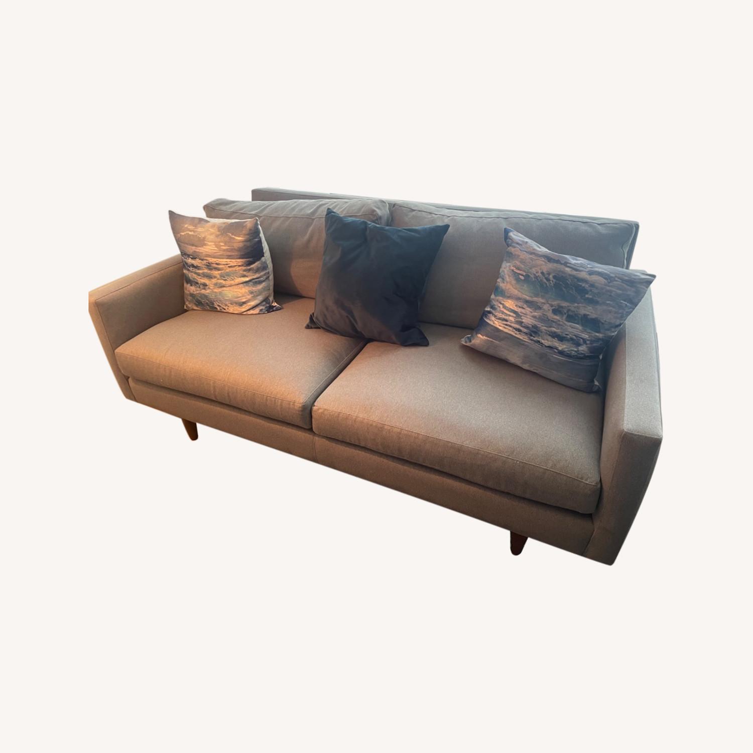 Seller's Notes:Beautiful and sophisticated mid-century ottoman from Room & Board. Greyish beige color with elegant legs. Excellent condition.