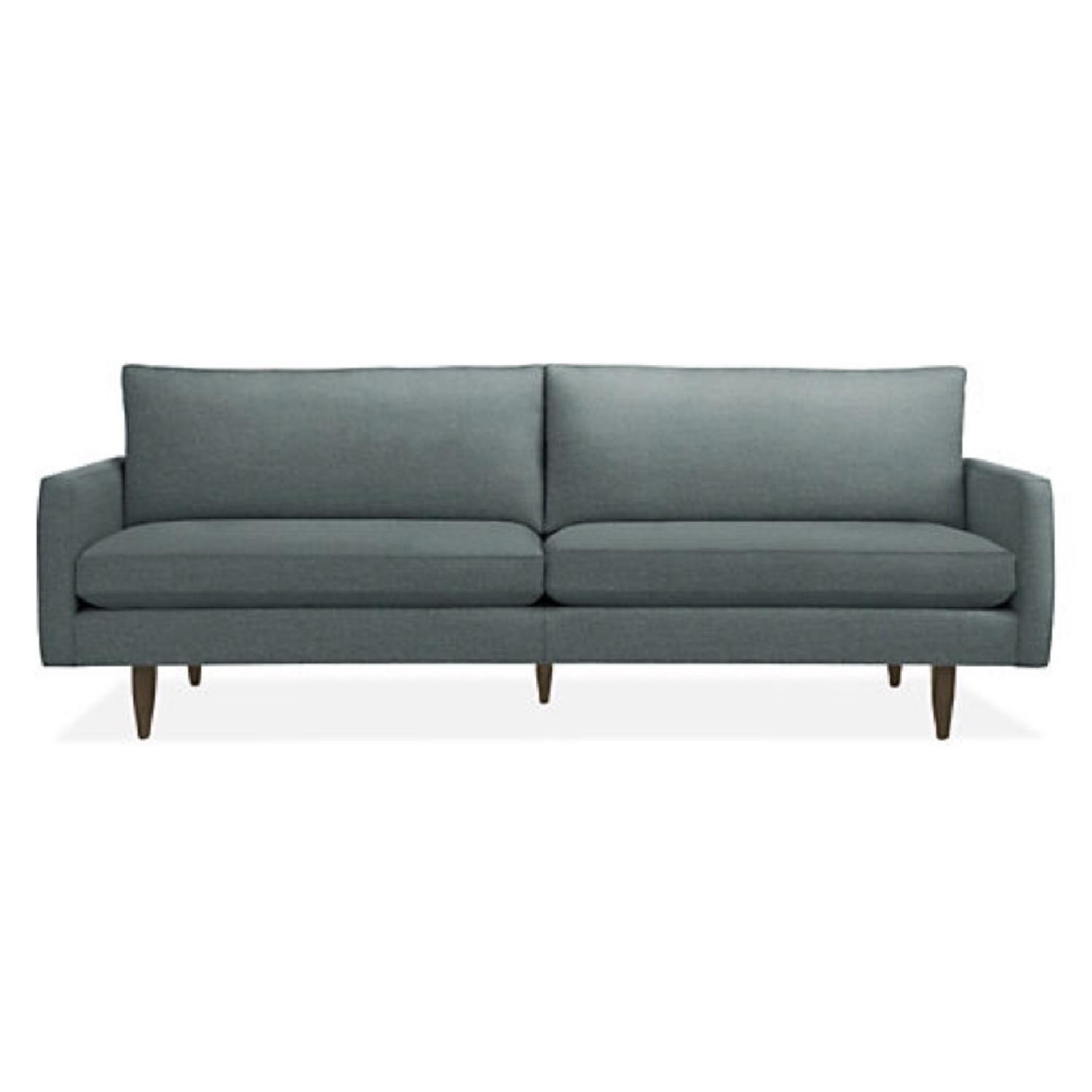 Seller's Notes:Room & Board boucle weave blue (Tepic Haze) couch. Very comfortable and attractive. I bought new 2 years ago, but am moving in with my girlfriend and don't have room for it.