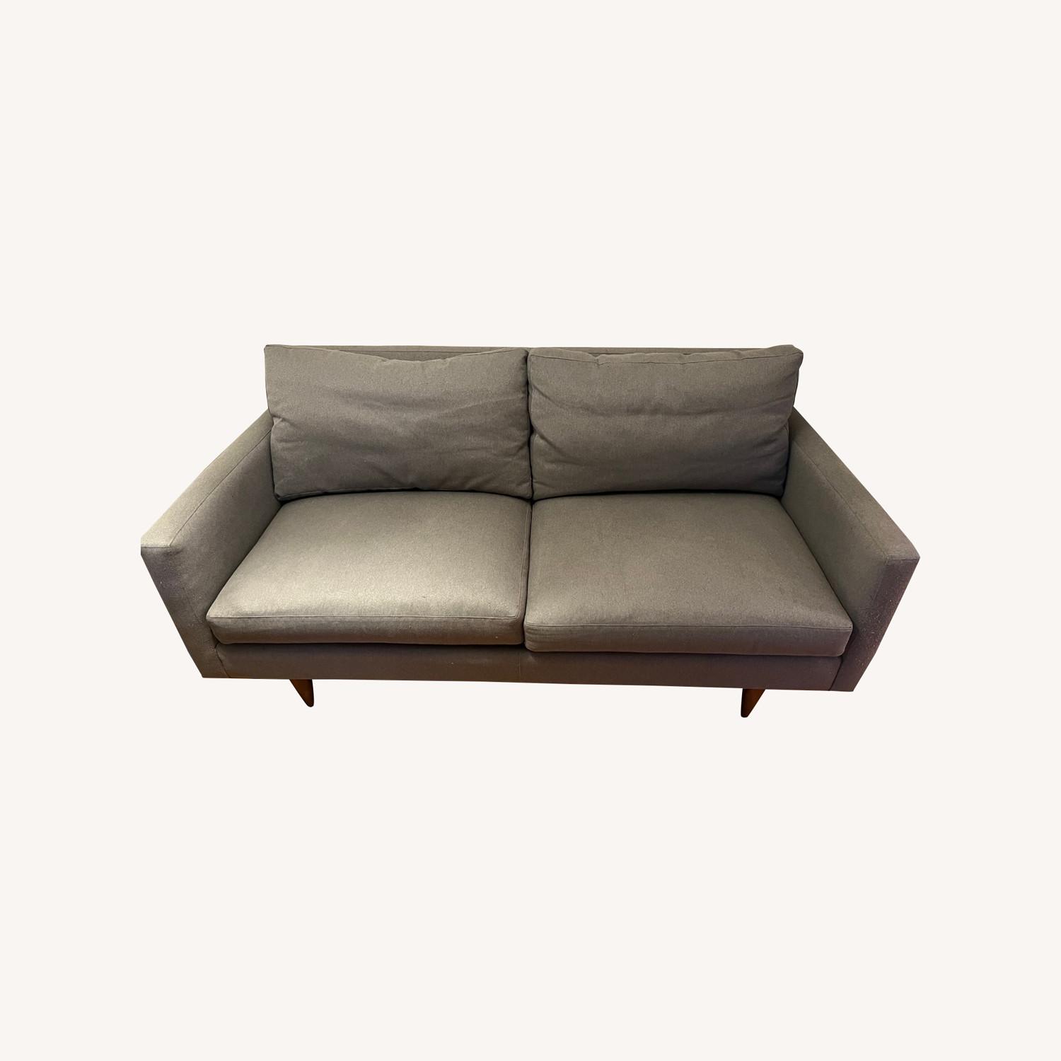 Seller's Notes:Have had this great sofa for 2 years. Deep and very comfy seats. Pillows still have great fluff and life to them! Color is a lovely grey. My cat has put some scratches in the arms and back a bit, but structure is strong and color makes them less noticeable. From Room & Board Description: Mid-century styling meets modern comfort in the Jasper sofa. Narrow arms make the most of the seating space, while elegant legs give Jasper a light profile. Plush, blend-down cushions envelop you in comfort and the smaller-scale frame won’t overwhelm your space.