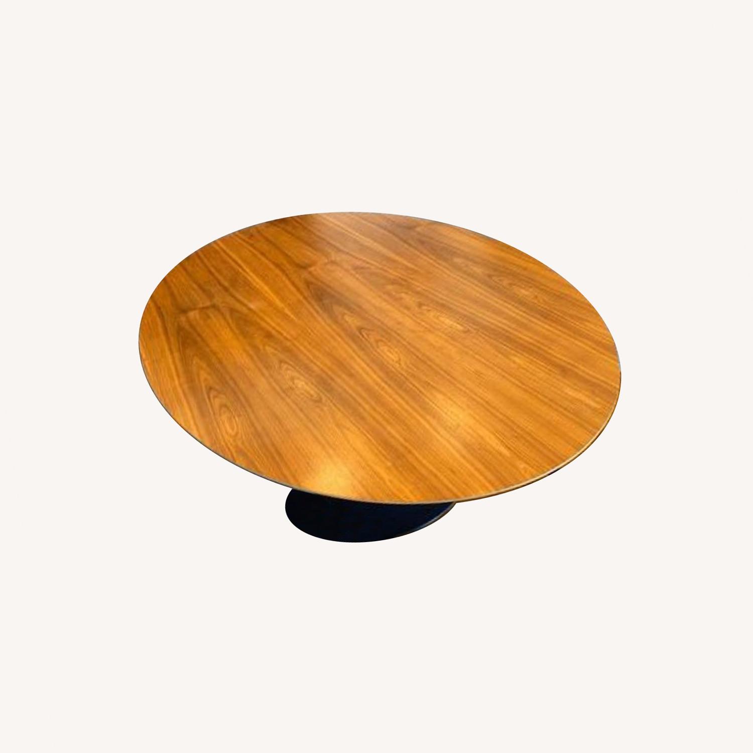 Seller's Notes:We bought this Room & Board wooden top dining table with walnut top, black base a few years back. We are changing tables because my husband wanted a rectangular table that is a bit less wide since our dining room isn't all that big. That said, we love the table. We have two kids and worried that it might tip or not feel sturdy, but exactly the opposite is true. Everything Room & Board is gorgeous and very well made. We've taken good care of the surface (always eat with place mats), the surface is almost like new - there are just a few nicks that you can't really see unless you look super closely (see photos).