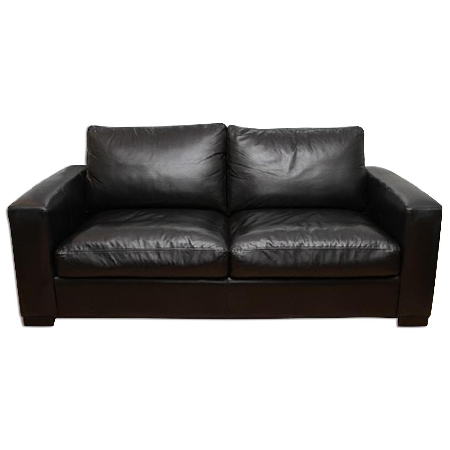 Seller's Notes:This beautiful, mint-condition sofa was purchased from Room and Board in 2008 for a pied-a-terre apartment, and thus was barely used. It's covered in authentic, thick, buttery black leather, and is extremely comfortable. I know there are a lot of black leather sofas for sale out there, but this one is REALLY GOOD QUALITY and EXCELLENT CONDITION. Although the company no longer makes this exact model, it's very similar to this sofa, which retails for $3,199. http://www.roomandboard.com/catalog/living/sofas/berin-leather-sofas
