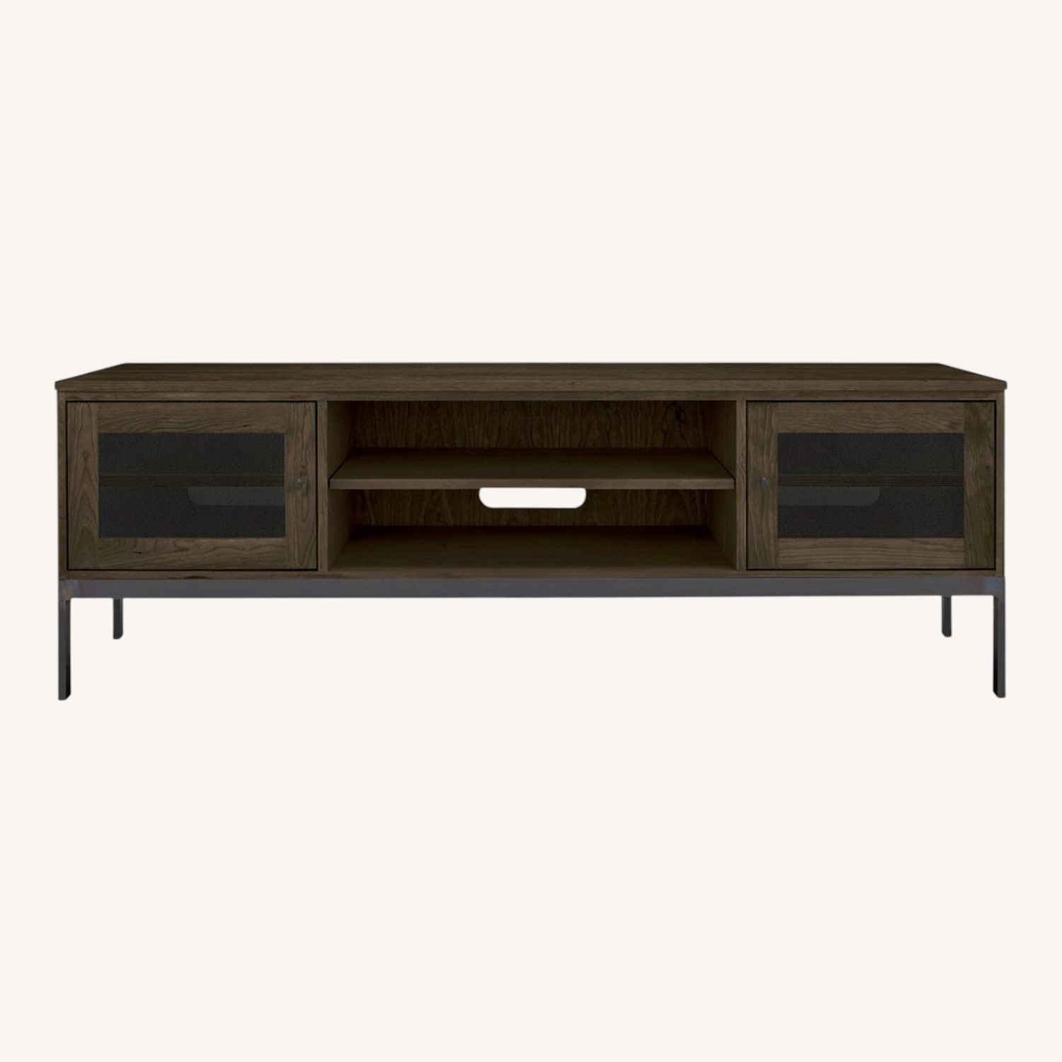 Seller's Notes:Room and Board Linear Media Cabinet (60"w 18"d 24"h) Maple Wood with Charcoal Stain