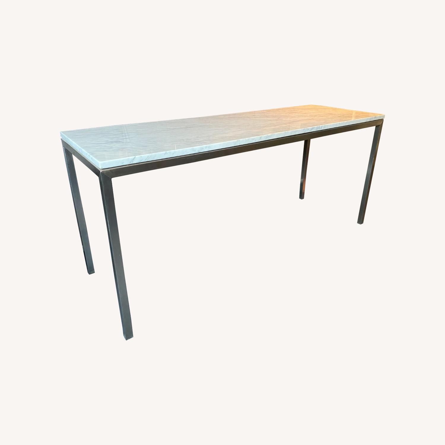 Seller's Notes:Room & Board Parsons Console Table for Sale Dimensions: 54w 18d 29h Top: Venatino Marble Base: Stainless Steel 1” thick legs In great shape. See photos. This retails at Room & Board for over $1,000.
