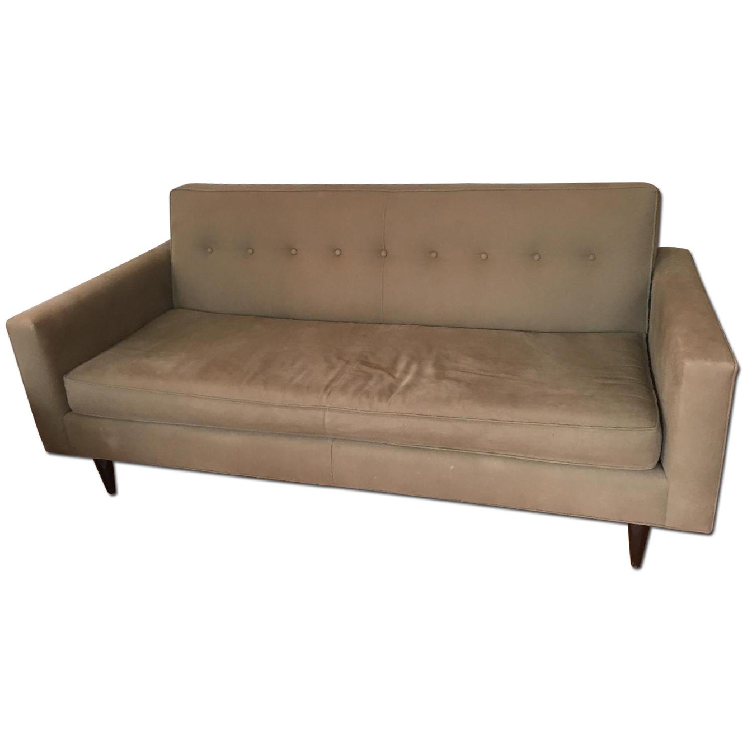 Seller's Notes:Mid-Century Olive Green couch is a three-seater in a neutral tone that goes with any living room. It has minor stains on the right-hand arm that are typically covered when you have decorative pillows on the sofa. There are also some discolored spots from regular wear and tear that are barely noticeable. Although the sofa has been exposed to cats, there are no scratches on the sofa and it has been thoroughly cleaned.
