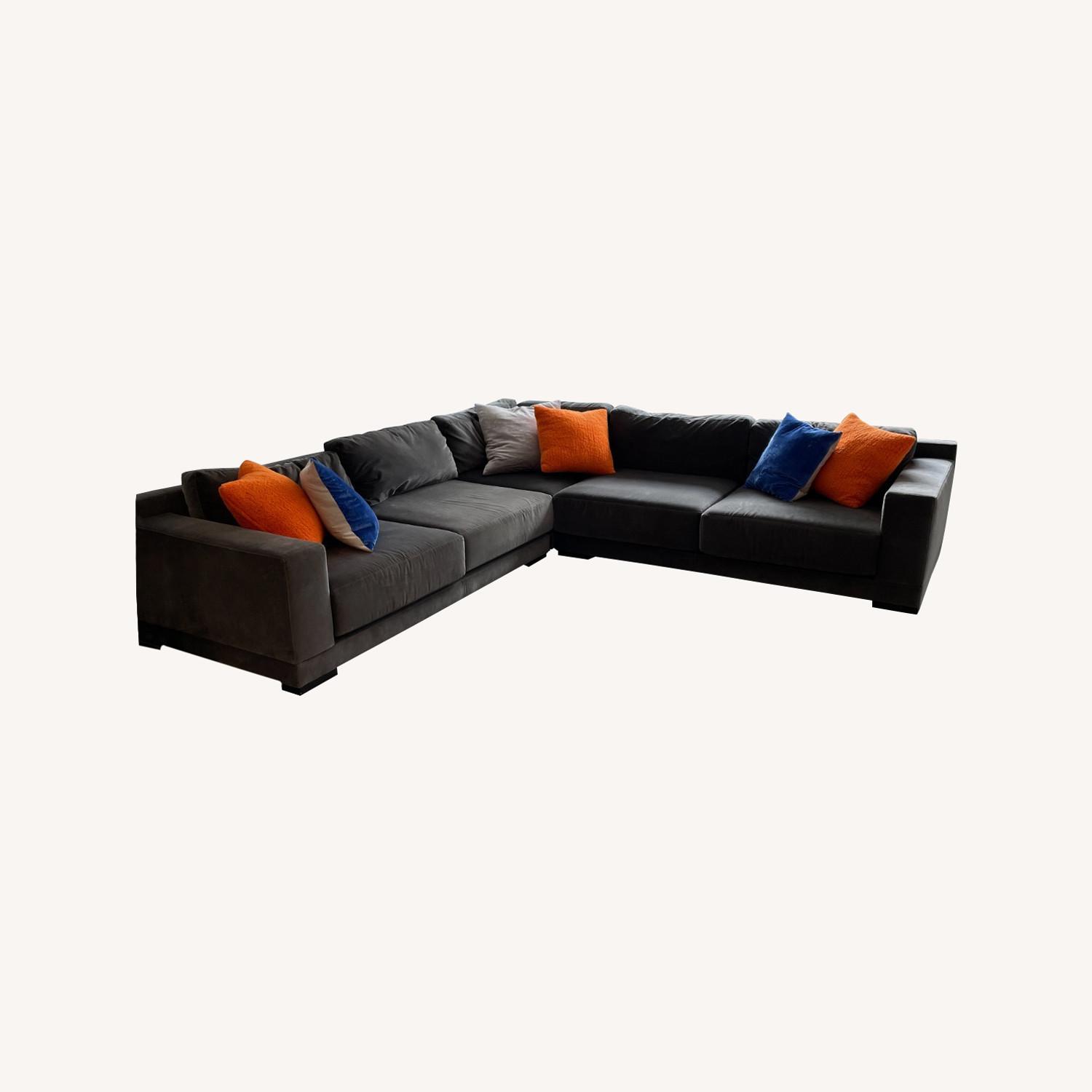 Seller's Notes:This sectional sofa features a large left-arm/right-arm/corner piece that comes with a 40" square ottoman. The fabric is Banks Charcoal Cotton velvet. It's beautiful and my kids love it but I'm downsizing now and it's a bit big for my new space. I have original receipts.