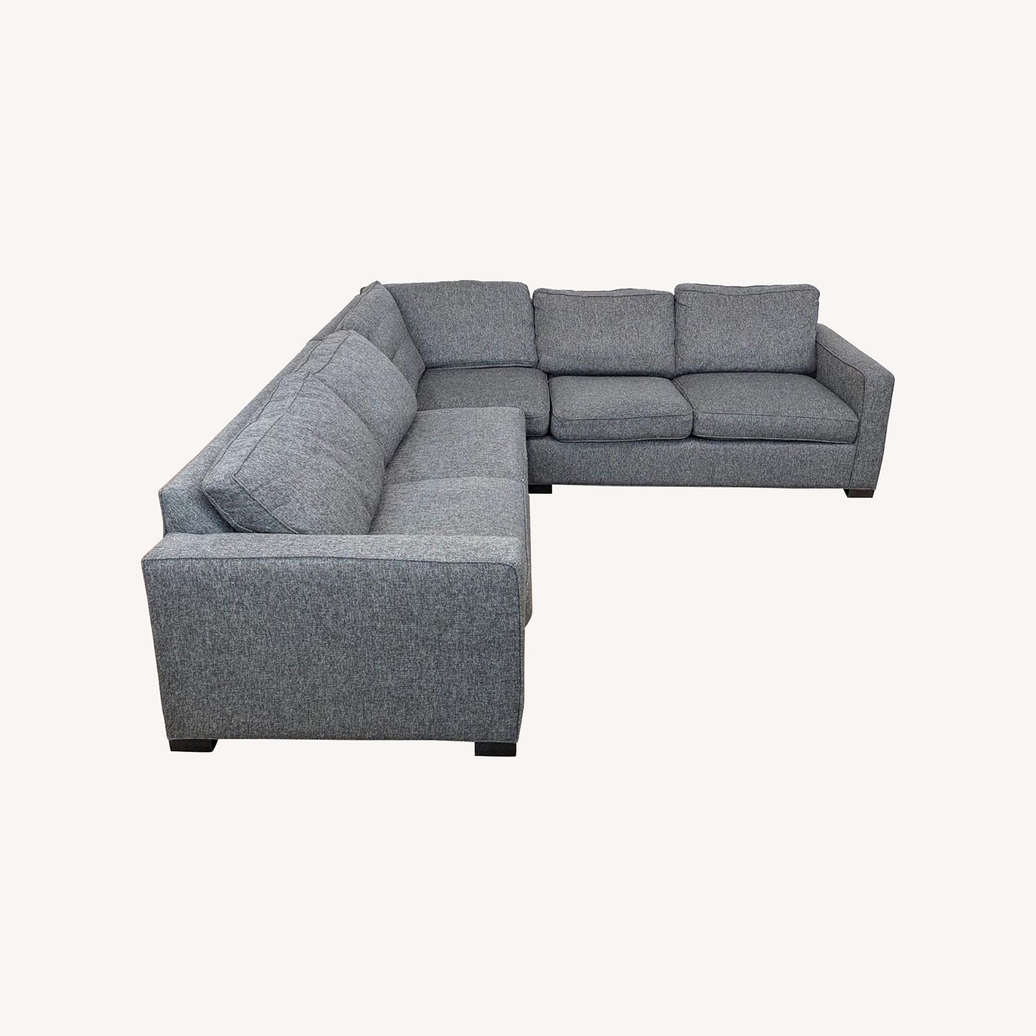 Seller's Notes: The Morrison L-shaped sectional by Room & Board features Tepic Charcoal upholstery with welting and soft cushions with a clean, modern look. Dimensions 1 (in): 112W x 42D x 32H Dimensions 2: 70W x 42D x 32H. Brand: Room & Board. Model: Morrison. Material: wood,fabric. Seat heigt: 20. Retail price: $4800. Gently used - any blemishes or damage will be included in the photos. #SKU: 1063341. Tags: wood,transitional,modern,fabric,contemporary"