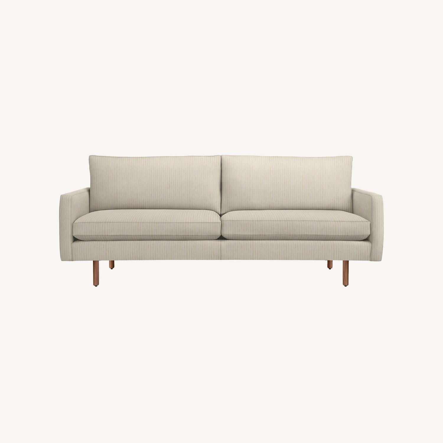 Seller's Notes:Mid-century styling meets modern comfort in the Jasper sofa. Narrow arms make the most of the seating space, while elegant legs give Jasper a light profile. Plush, blend-down cushions envelop you in comfort and the smaller-scale frame won’t overwhelm your space.