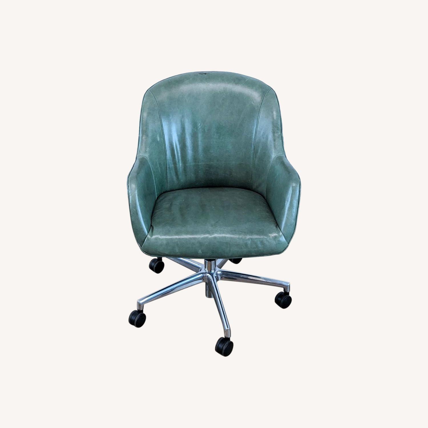 Seller's Notes:Description: Equally Stylish behind a Desk or in your Living Space, the Modern Analine Leather Nico Chair will make you feel right at home. Neatly Tailored, the Seat and Back offer Exceptional Comfort, even when you're working long hours. Lumbar support has firm foam and fiber cushion. The Seat Height offers Adjustability and Swivels 360 degrees with a Bench Made Hardwood Frame. There is some markings on the Leather as shown in the photos.. Brand: Room & Board. Model: Nico. Seat heigt: 19. Retail price: $1349. Gently used - any blemishes or damage will be included in the photos. #SKU: 1056927.