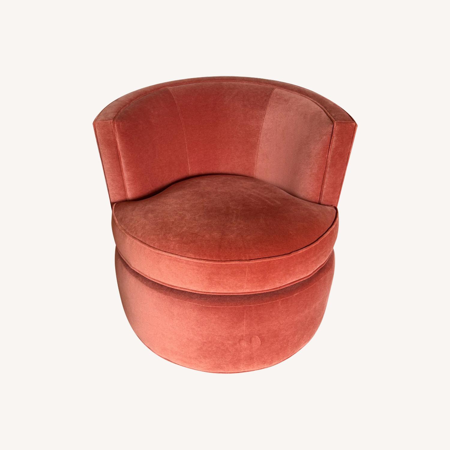Seller's Notes:Lightly Used Swivel Chair from Room and Board - rust velvet color and material