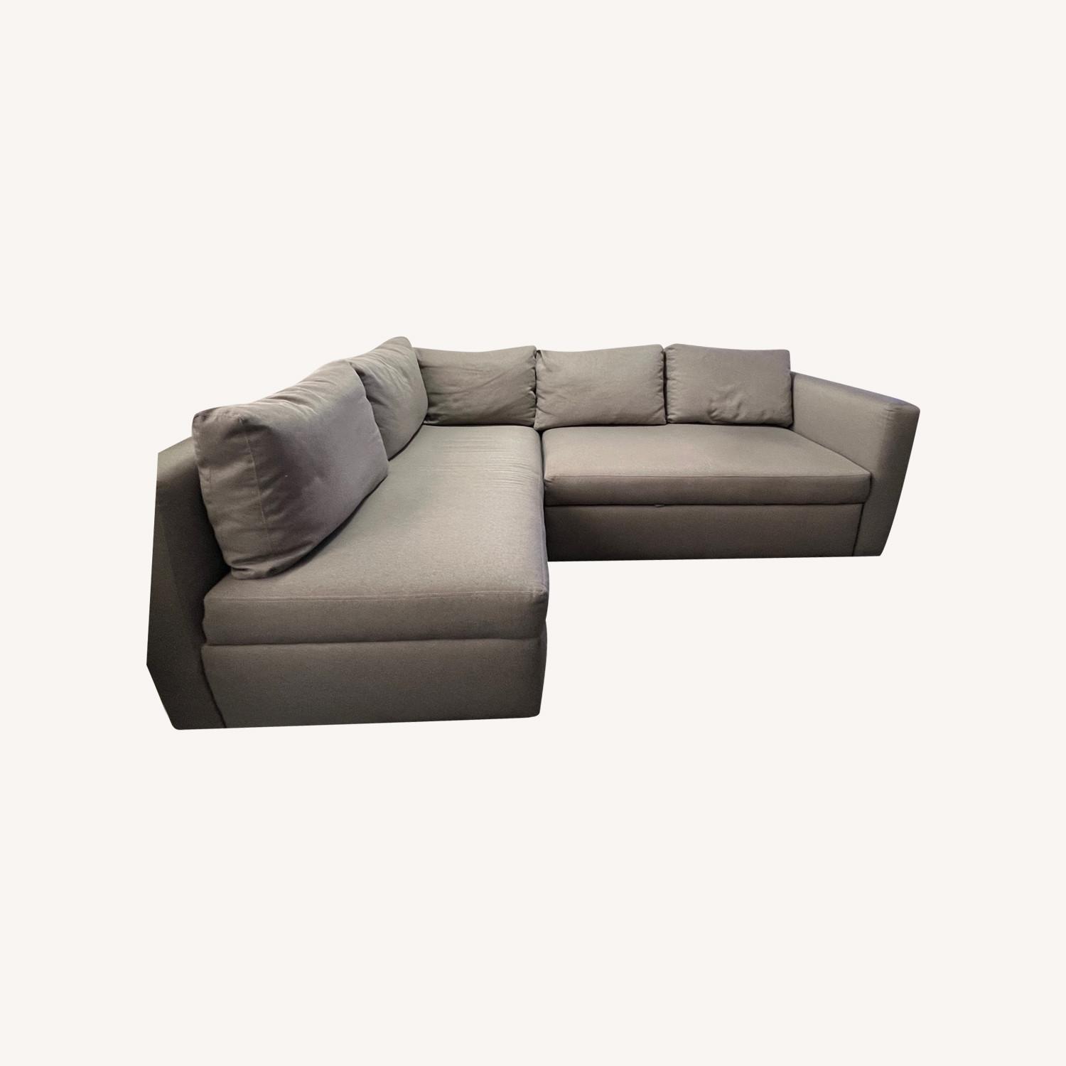 Seller's Notes:This is an L shaped sectional with a pop-up sleeper that is very comfortable. The additional storage underneath is very large - great for saving space! We purchased it 4 years ago and is in very good condition with minor wear. The last year we adopted a cat, and have kept it covered; there are minor scratches on the arms towards the bottom, they are not noticeable. This is our second Room & Board sectional, they're amazing quality and this one will last many more years. It's a great deal!
