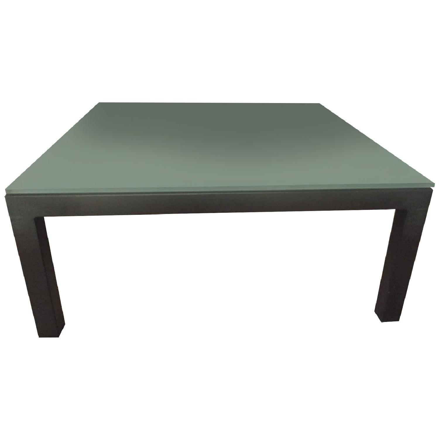 Seller's Notes:Black steel frame with frosted glass top A couple of minor scuffs on the metal frame Very versatile classic piece of furniture - goes with anything!