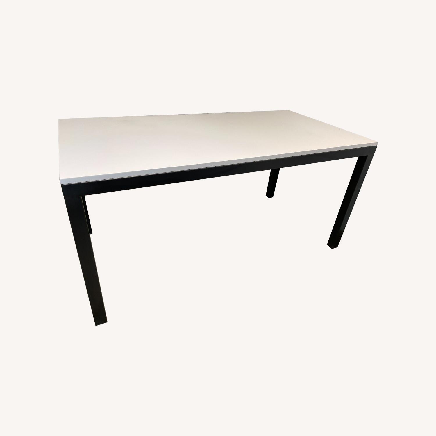 Seller's Notes:This is a Room & Board, Parsons desk/table with a white MDF top and a natural steel frame. Used in office for a few years, but in very good condition (no noticeable blemishes).