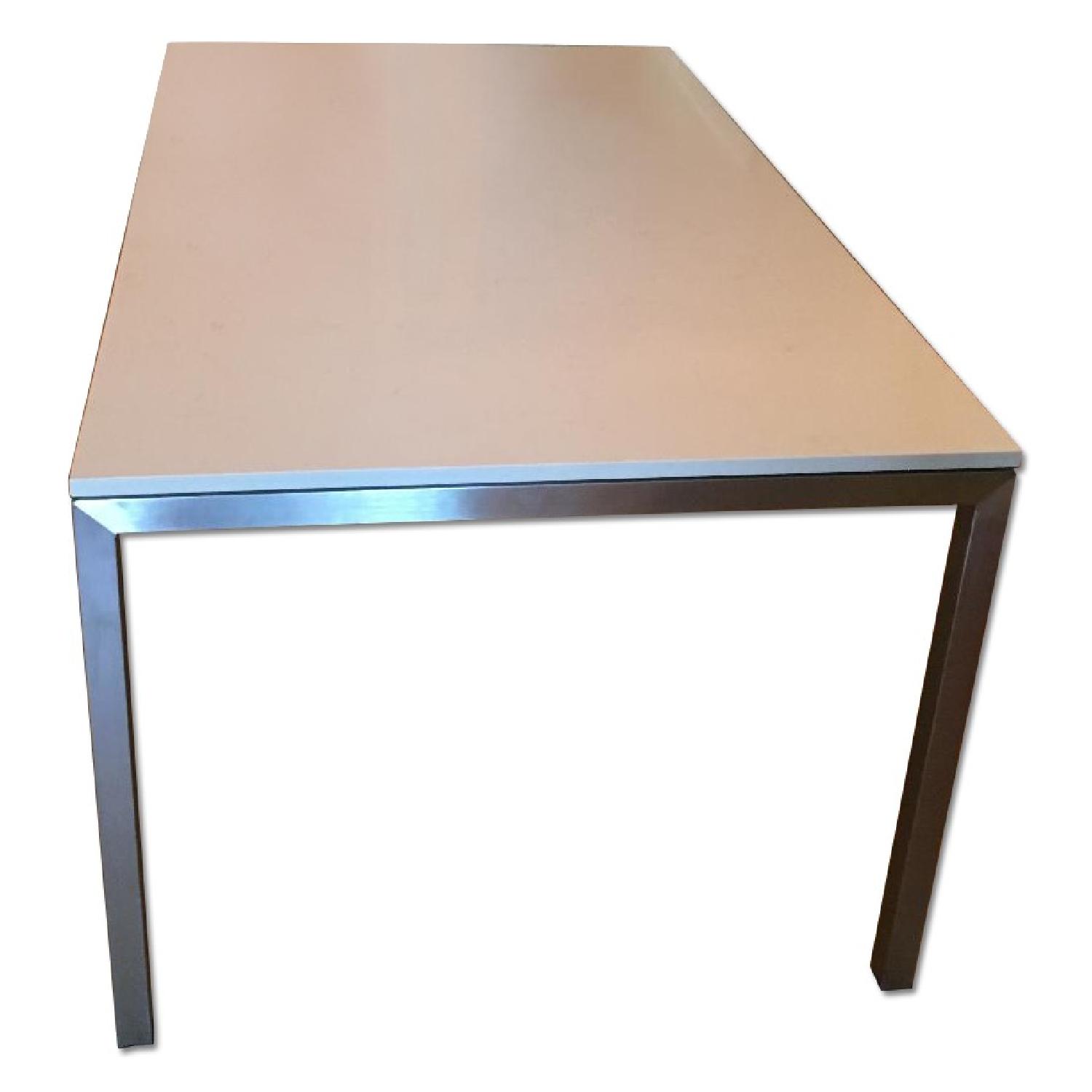 Seller's Notes:Room & Board, Portica Dining Table, Fawn quartz top, silver legs