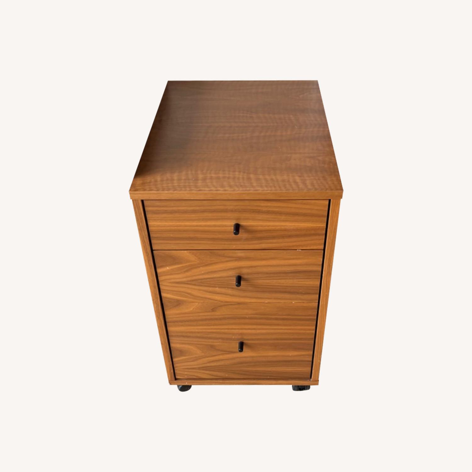 Seller's Notes:Room & Board Three Drawer Filing cabinet on wheels. Stamped on the inside with manufacturer’s mark. Some scratches on the top and by one wheel (see pics). Comes from a smoke-free, pet-free home.