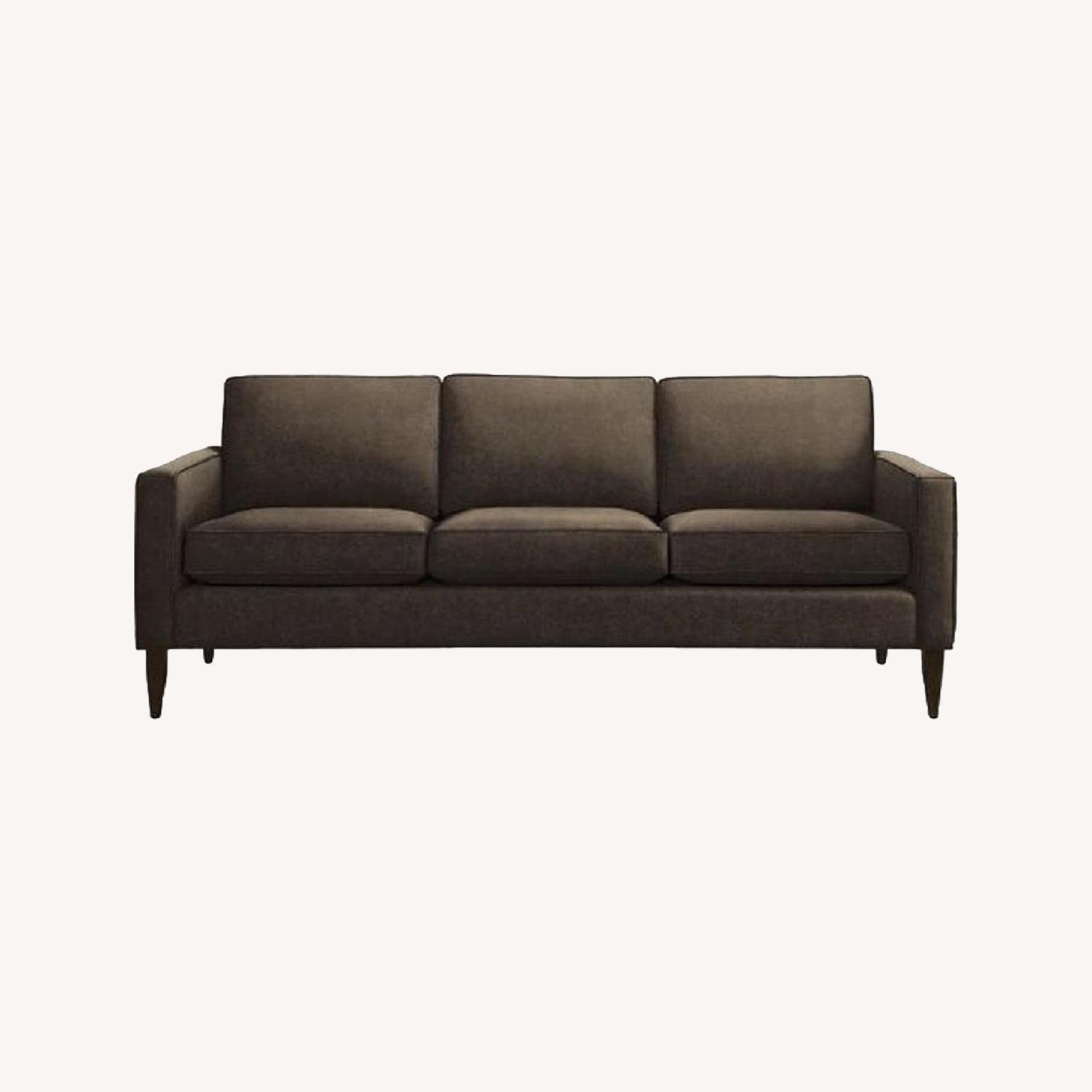 Seller's Notes:Room & Board Murray Sofa, in dark brown fabric (Titan Mocha). The collection has been discontinued but I attached a picture of the tag to prove it’s authenticity. This is a great couch, and still has many years left! Some of the legs are scratched, but the front two are in good shape still. The fabric is a brown textured weave, and the pillow and seat covers are all removable with zippers as pictured. They cushions are also detachable so the couch is easy to clean. The fabric has slightly pilled in some areas but there aren’t any noticeable stains. Width: 81 inches, Height: 31 inches, Depth: 34 inches