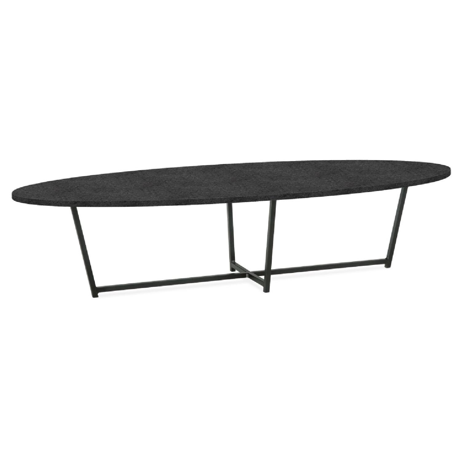 Seller's Notes:Room & Board Soto Oval Coffee/Cocktail Table 60w 24d 14h, very stylish, black steel legs with Mesabi black honed granite top. Excellent condition. It's a custom order from Room & Board with a month-long back order. Retails for $1,300+ (inc taxes and delivery). A high-quality piece that is both understated and high impact. You won't be disappointed.