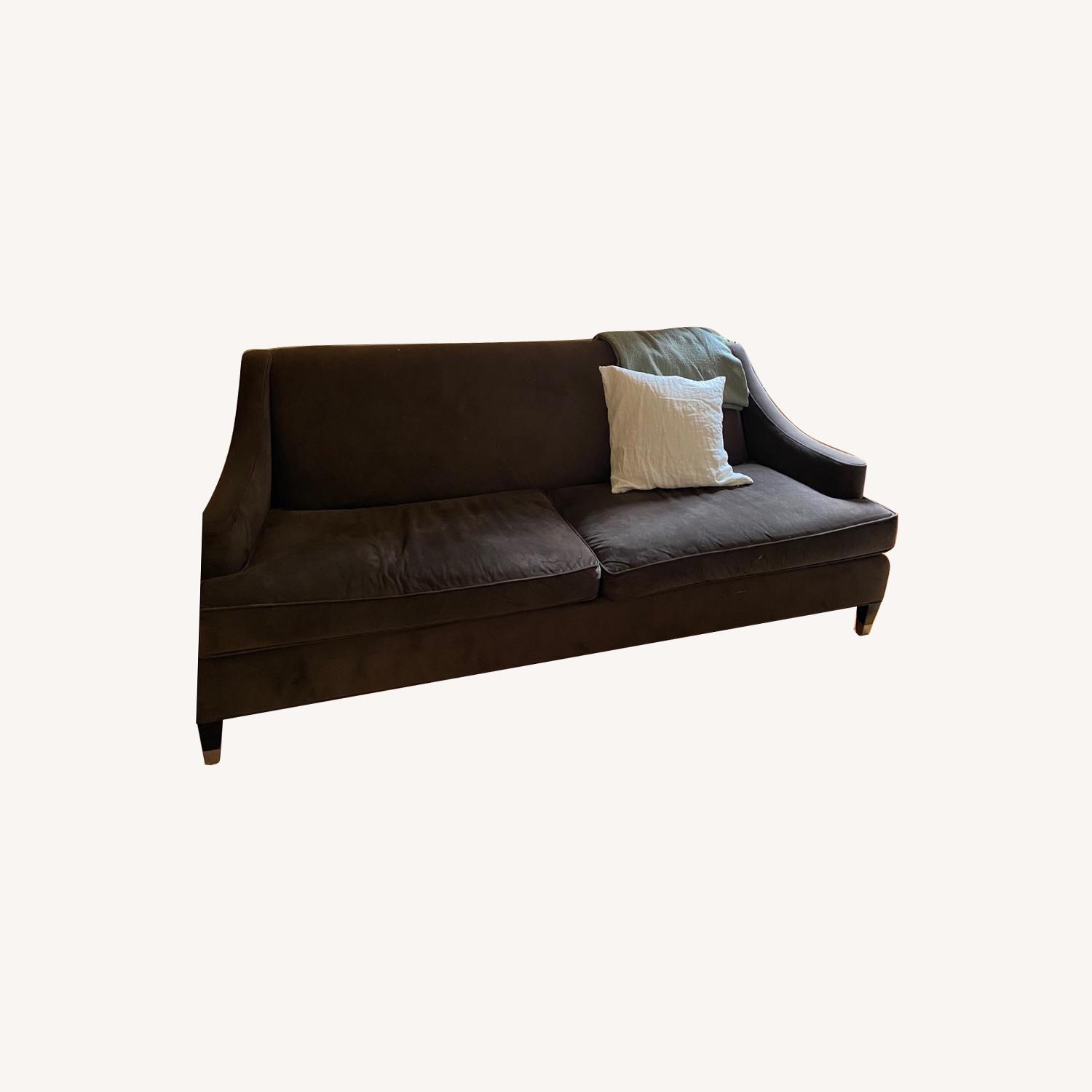 Seller's Notes:In great condition. Seats three comfortably. Room & Board couch, soft suede in dark brown. There are two minor marks shown in the above images, barely noticeable.