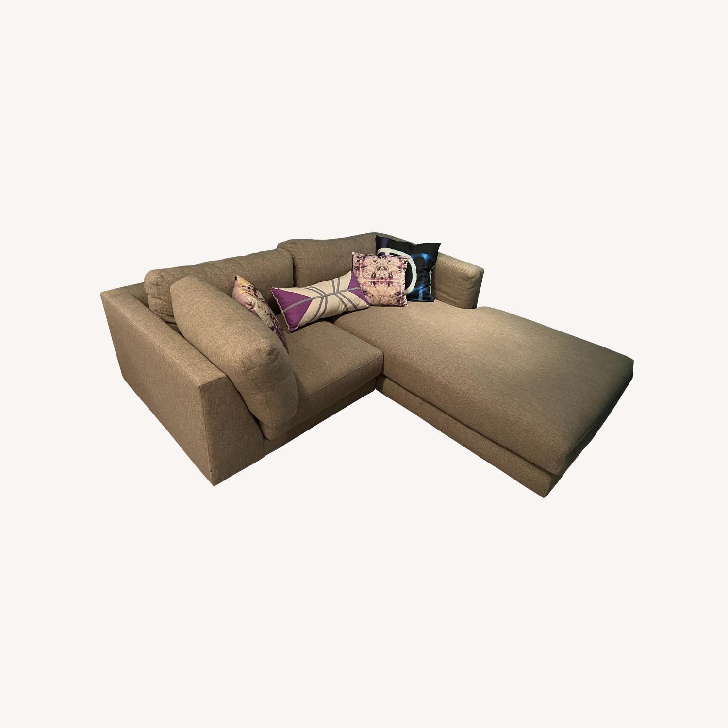 Seller's Notes:Perfect for small spaces or open concept layouts as it sits low to the ground and is an un-intrusive color. The few times I used it, I loved snuggling up with a book or watching a movie. This couch was barely used I travel most of the time for work and it was a secondary seating nook. It was originally ~$5,000 and priced to sell fast because I want to use the space for another purpose. Very comfy, and the ideal couch relaxing in. It's clean and modern / minimalist but not cold, very inviting. Measurements: Width- 80" Length on chaise - 80" Length on the Corner side- 40"