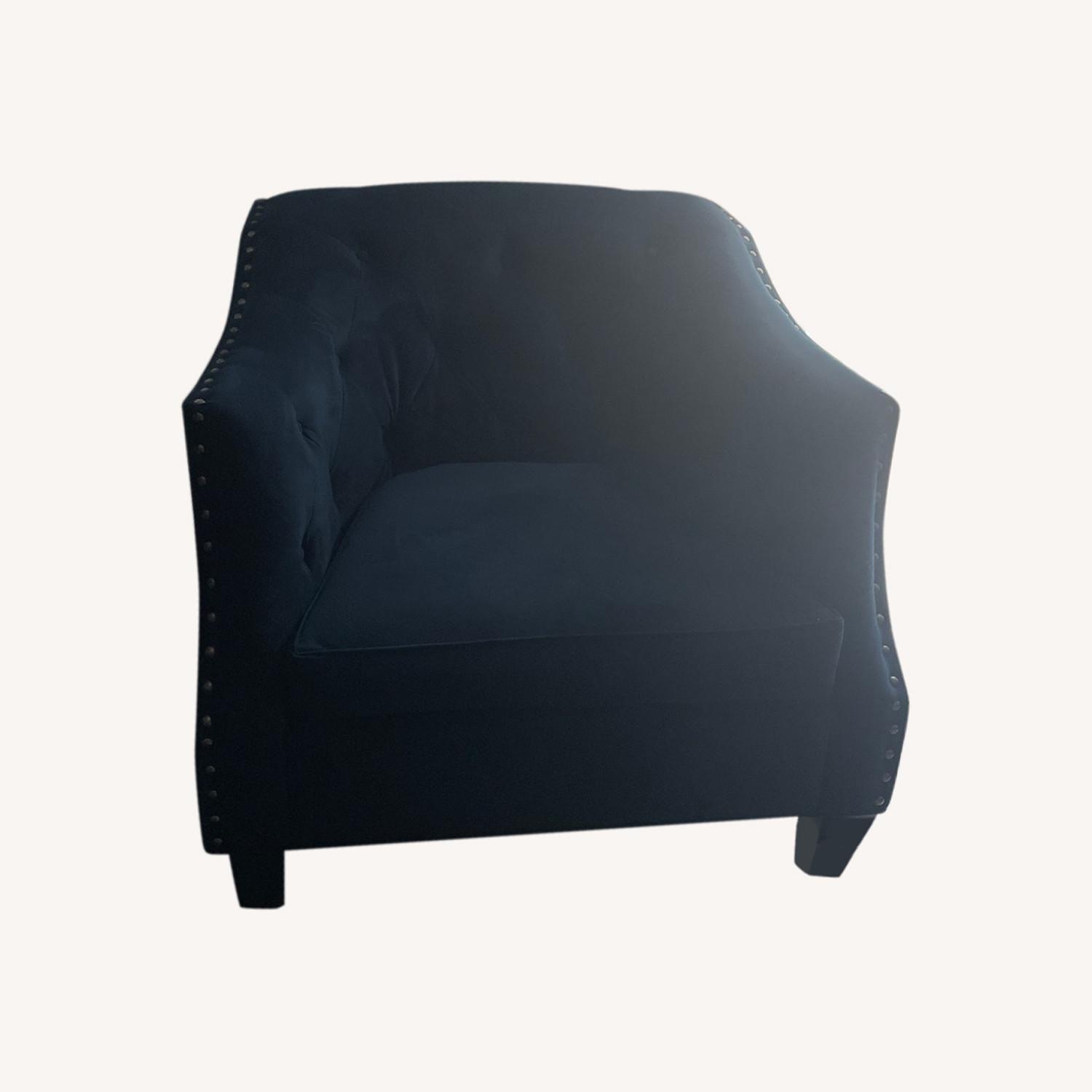 Seller's Notes:Beautiful blue tufted chair with nailhead trim. 6 years old with minimal use.