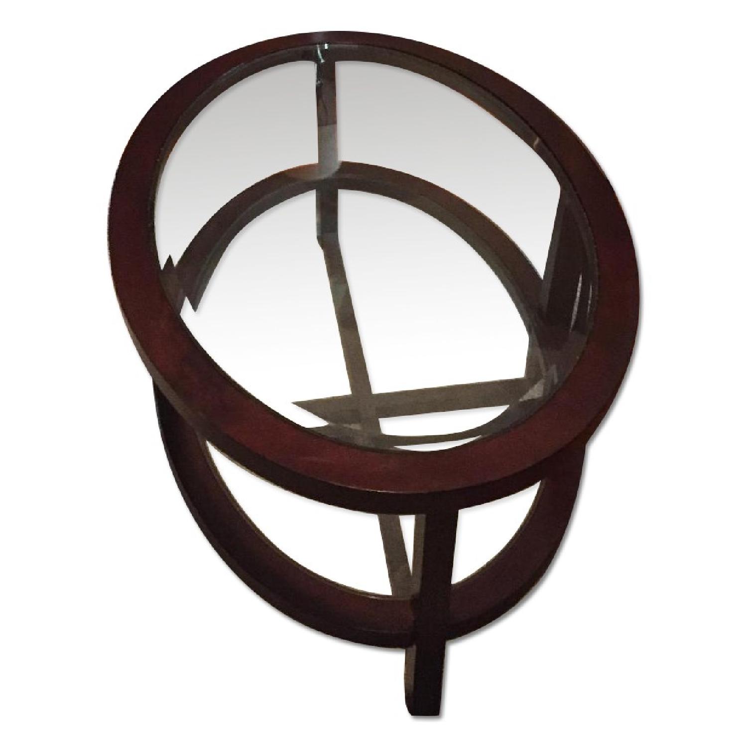 Seller's Notes:Gently used coffee and end table. Wood and glass combo. Each are two-tier (glass shelf on bottom). Flash sale. Must go.