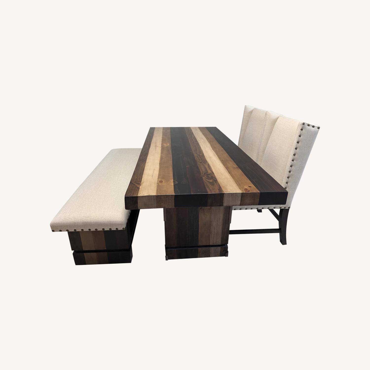 Seller's Notes:I purchased just the dining table before I moved into my first new townhome a couple years ago. I then purchased the matching dining room chairs and bench this year. I think this is a beautiful looking set and it has been gently used. Now that I've settled in my home and gone thru my list of pertinent home projects, I've come to the realization that this dining room set is just too big for my dining room area. Dimension for chair: 22"w x 22"d x 42"h Dimension for bench: 63"w x 18"d x 21"h I'm looking for a much smaller dining room set.
