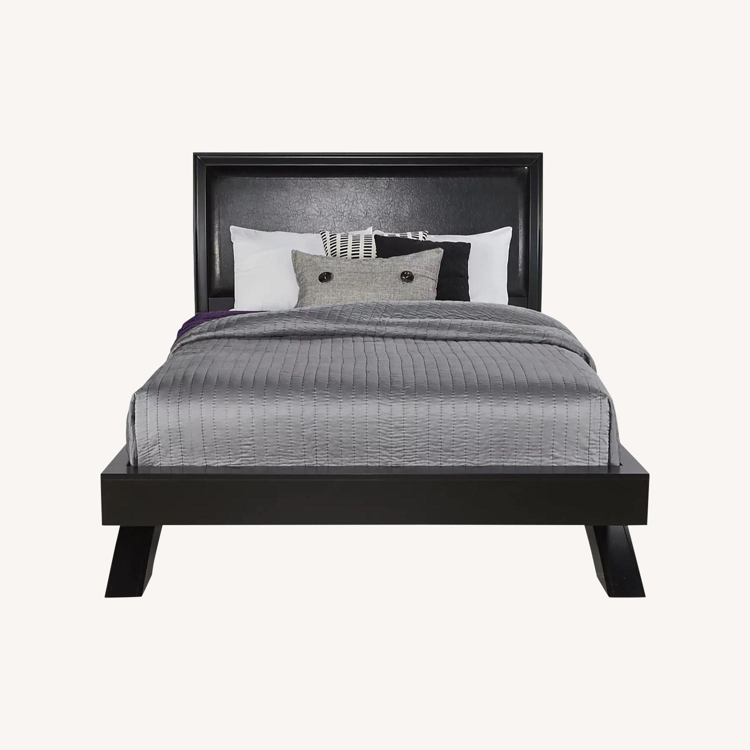 Seller's Notes:Update your bedroom with the Belcourt collection. The focal point of this group is the sleek platform bed with its dramatic arched base and upholstered headboard. Thoughtful features include stitching detail on the headboard's fabric, felt lined top drawers and a choice of round and bar shaped hardware in brushed chrome (both are included). This contemporary suite is crafted using wood solids and birch veneers in a classic black finish. Mattress and foundation (if required) sold separately. Bed board required for mattress support.
