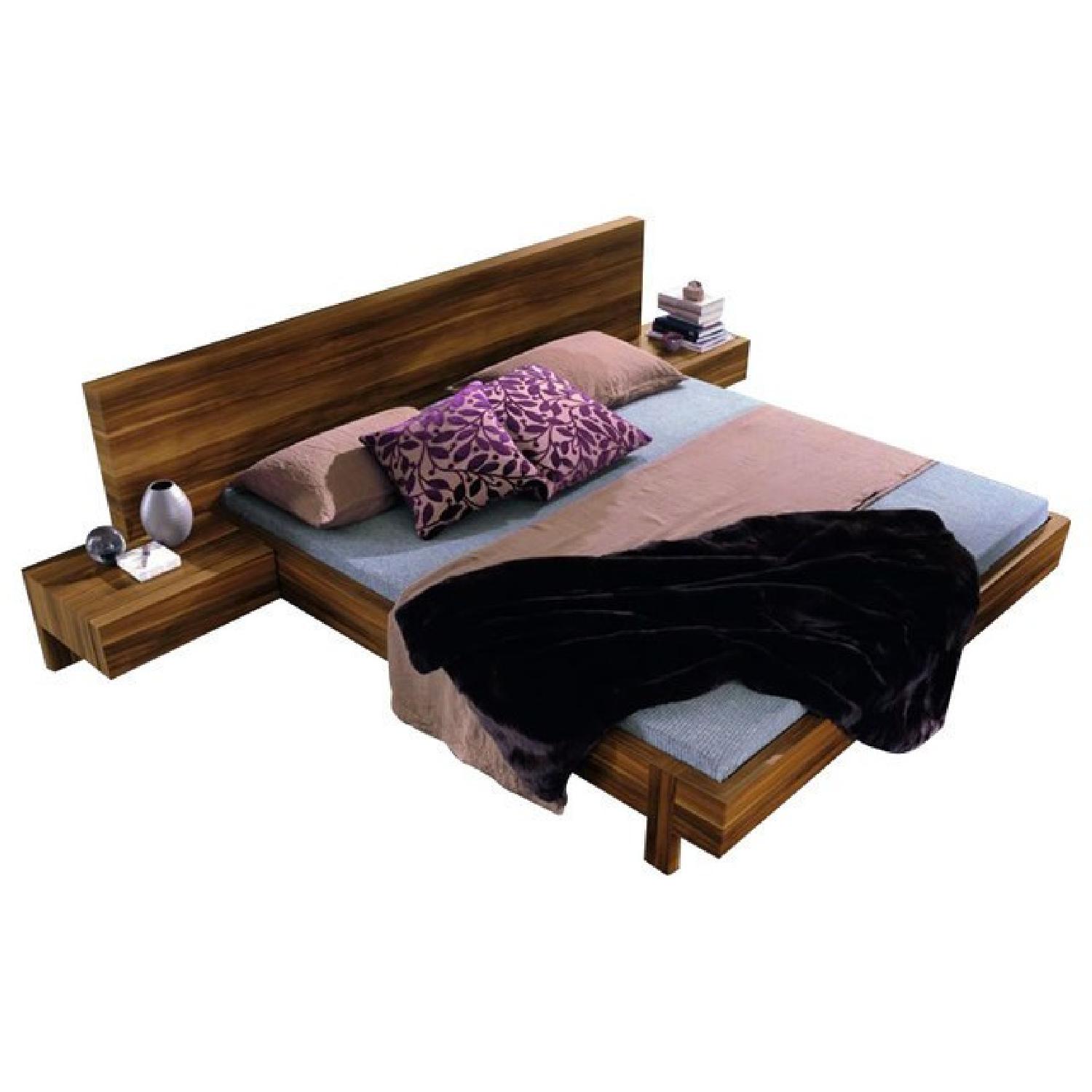 Seller's Notes:Rossetto Gap Queen Platform Bed in Walnut - Made in Italy This is an incredibly sleek and beautiful low profile platform bed frame Made In Italy. This is the original bedframe that Modloft and others rip off with lower quality products. Here's what's included with the retail prices: Bed with Headboard: $1535 Set of Italian Leather Headboard Pillows: $285 Set of nightstands: $825 Total: $2645 Yes, you might find some cheaper new retail prices, but anywhere you look, the total package of everything I am selling together is $2k+ new. Note: I do not have and thus am not including the dresser. The bed with nightstands is 115" wide. So you will need a long enough wall to put this against. I will take the bed apart and am happy to give you a few moving blankets if you need them. I have had this bed for two years. There are two flaws, neither of which are visible: 1. When I first took it apart to move it, the headboard and piece under it came apart, ripping the flush screw threads out. I had a carpenter screw small screws into the holes, put the threaders back in, and secure the threaders with bondo. Bondo bonds to metal, hence the screws. It was professionally done, and is actually Stronger than it originally was now. This is 100% not visible, as it's on the bottom underside of the headboard, and it screws into the back bottom, so the repaired holes are between the two pieces. It's insanely sturdy. 2. When detaching the left nightstand to move it, the nightstand moved forward with the screw unscrewed but still in the hole, so it scratched the side of the bed. But this is also 100% not visible when set up because the nightstand mounts against the bed, covering it up completely. Again, the two above flaws are not visible. Queen Frame: 63.75" W x 87" L x 7.5" H Headboard: 98.5" W x 3.5" D x 21.25" H Headboard with two Gap Walnut Nightstands: 115" W