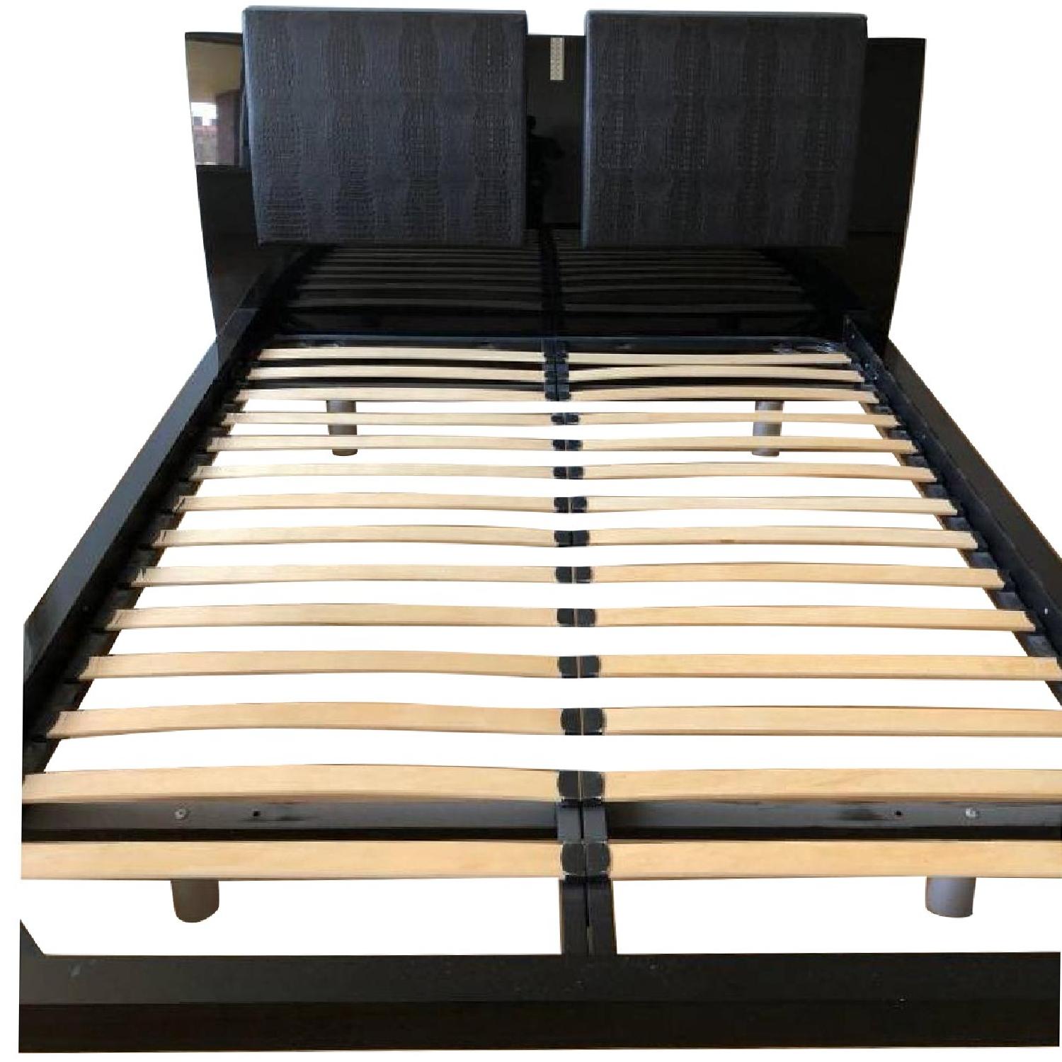 Seller's Notes:Moving sale! The Diamond by Rossetto is a wooden floating platform bed designed and manufactured in Italy. - Simple modern design. With its shape and hidden legs there is an illusion of bed just floating in the air without even touching the floor. - The headboard features gloss black lacquered finish and Swarovski Crystals details. - The headboard also comes with supporting cushions upholstered in black crocodile-pattern, vegan-leather for extra comfort