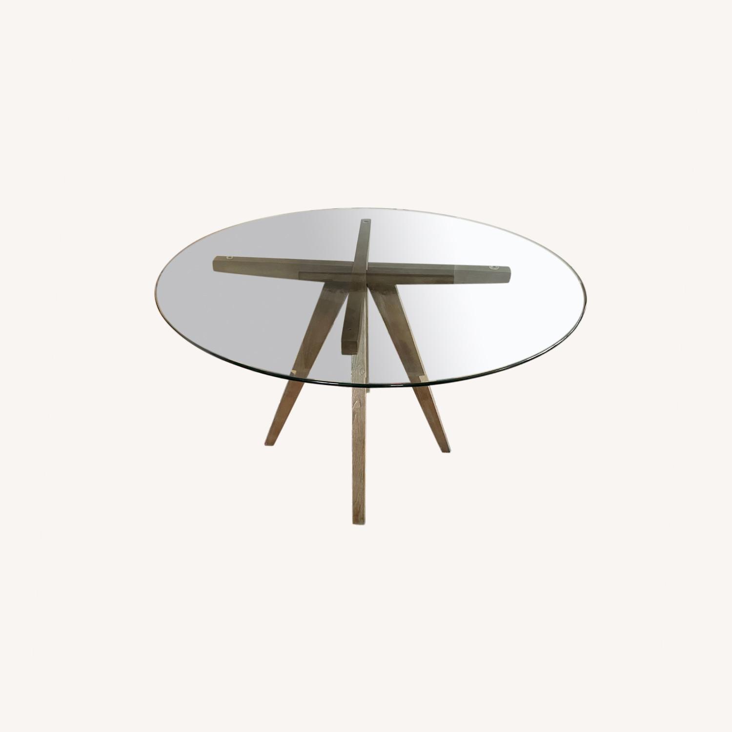 Seller's Notes:I bought this glass dining table from Overstock or Wayfair, I can't remember. It's a great table, but my new apartment just won't fit a table this size. We are a family of 5 and all easily fit around the table. The glass is super easy to clean and it's very stable. Just a note: The glass will lay completely flat and does not rock if you remove one of the rubber stoppers from underneath (see photos).