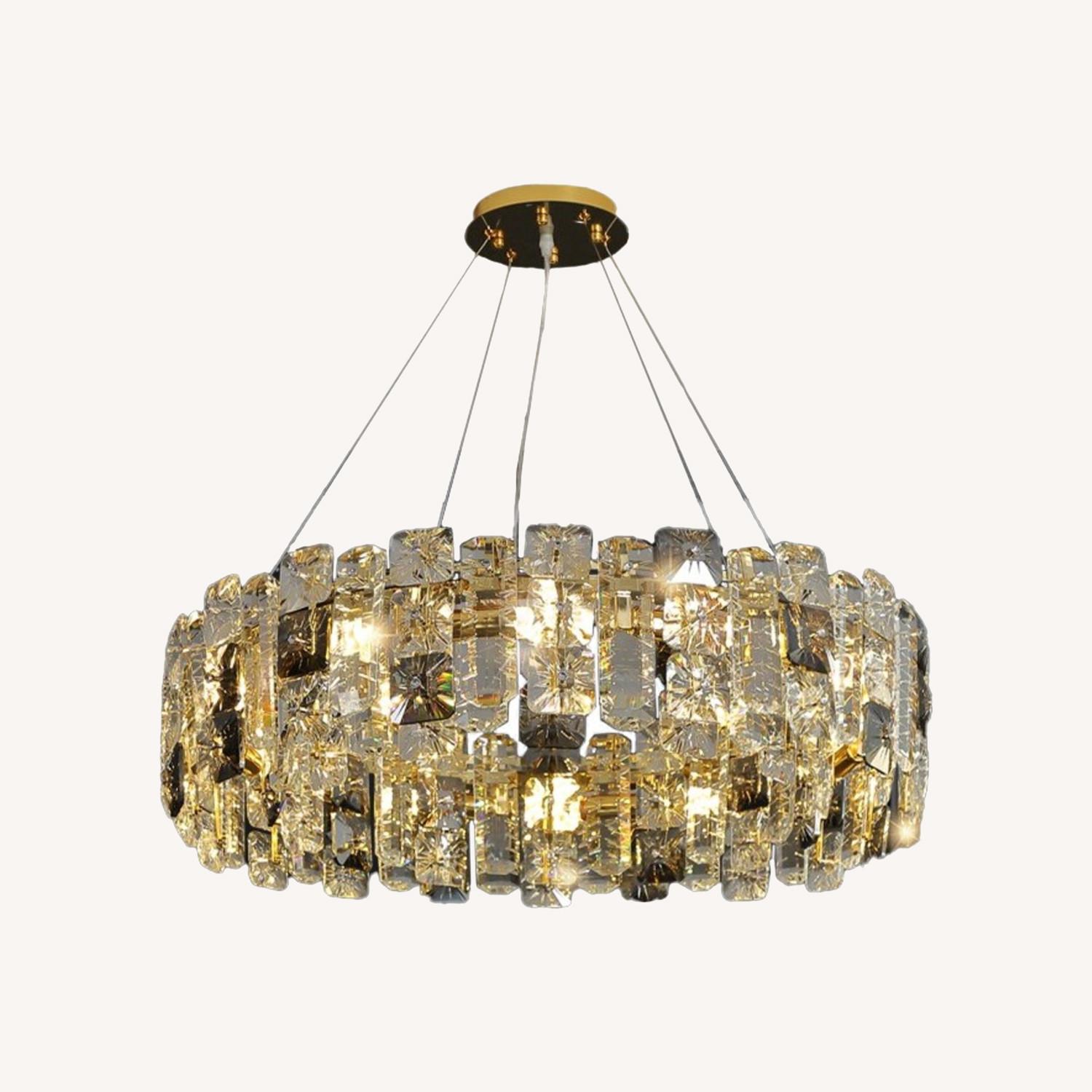 Seller's Notes:This modern chandelier is the epitome of sophistication and elegance, designed to elevate the ambiance of any living space. Crafted with precision, it features a stunning round shape adorned with glistening crystals, exuding a luxurious and contemporary charm. Perfect for both the bedroom and living room, this crystal lighting fixture adds a touch of glamour to any home decor. Its modern design seamlessly blends with various interior styles, making it a captivating focal point in any room. Elevate your space with this exquisite luxury round crystal chandelier, and bask in the enchanting glow it provides. Product parameters: Style: Modern Material: Metal, Crystal Body color: Gold Crystal color: Size: 6 Bulbs: Dia19.7xH7.5" / Dia50xH19cm - 33 lbs (15kg) Suspension wire: L19.7" / 50cm (Adjustable) Light Source: E12 LED Bulbs (Included) - 6 Bulbs Emitting color: Warm light 3000K / Dimmable Voltage: AC110-240V UL Certified: YES Apply: Living Room, Dining Room, Bedroom, Kitchen Island, Hall, Lobby, Restaurant, Bar Applicable area: 10-30sq.