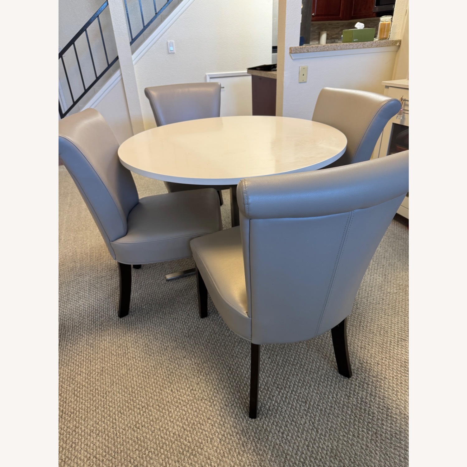 Seller's Notes:Round dining table with four leather chairs