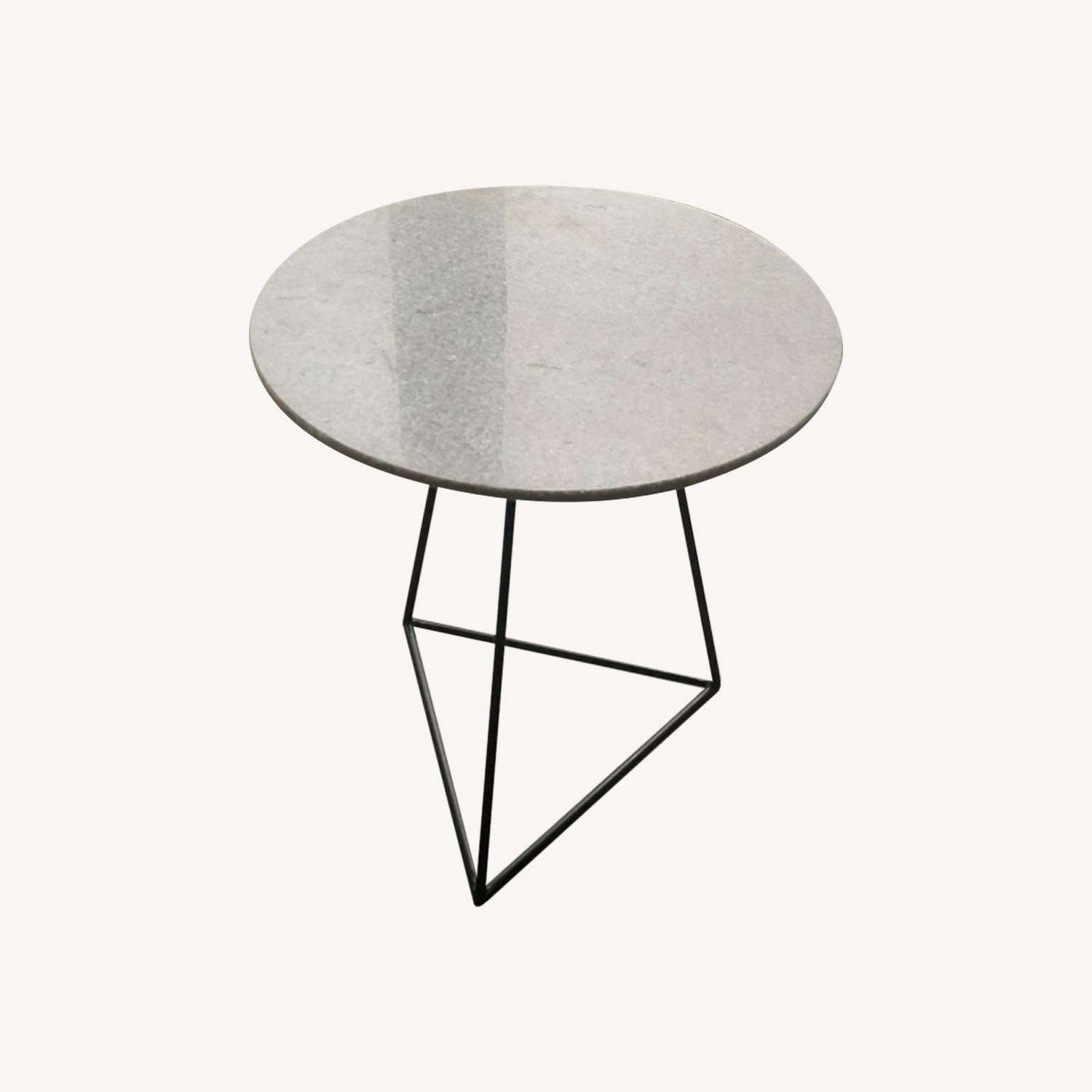 Round White Marble And Black Metal End Table