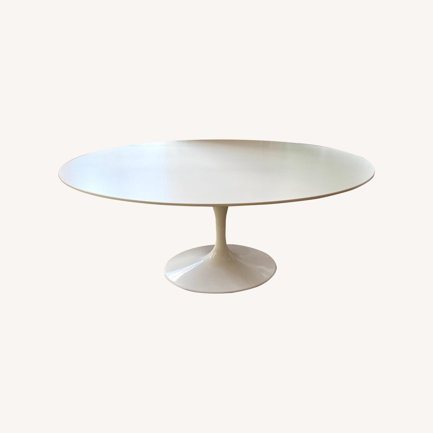 Seller's Notes:Seller's Note: This table was purchased at the end of 2019, but we did not live in the home (and therefore did not use the table) between 2020 and now. As a result, it was barely used and is in fantastic condition!! Product description from the retailer: The Tulip Table series is a premium reproduction line inspired by Finnish and American mid-century architecture, a period vastly characterized by the simplification of everyday living. The unique single pedestal base is made from strong cast aluminum to support a heavy top whilst eliminating the unnecessary clutter of legs underneath.