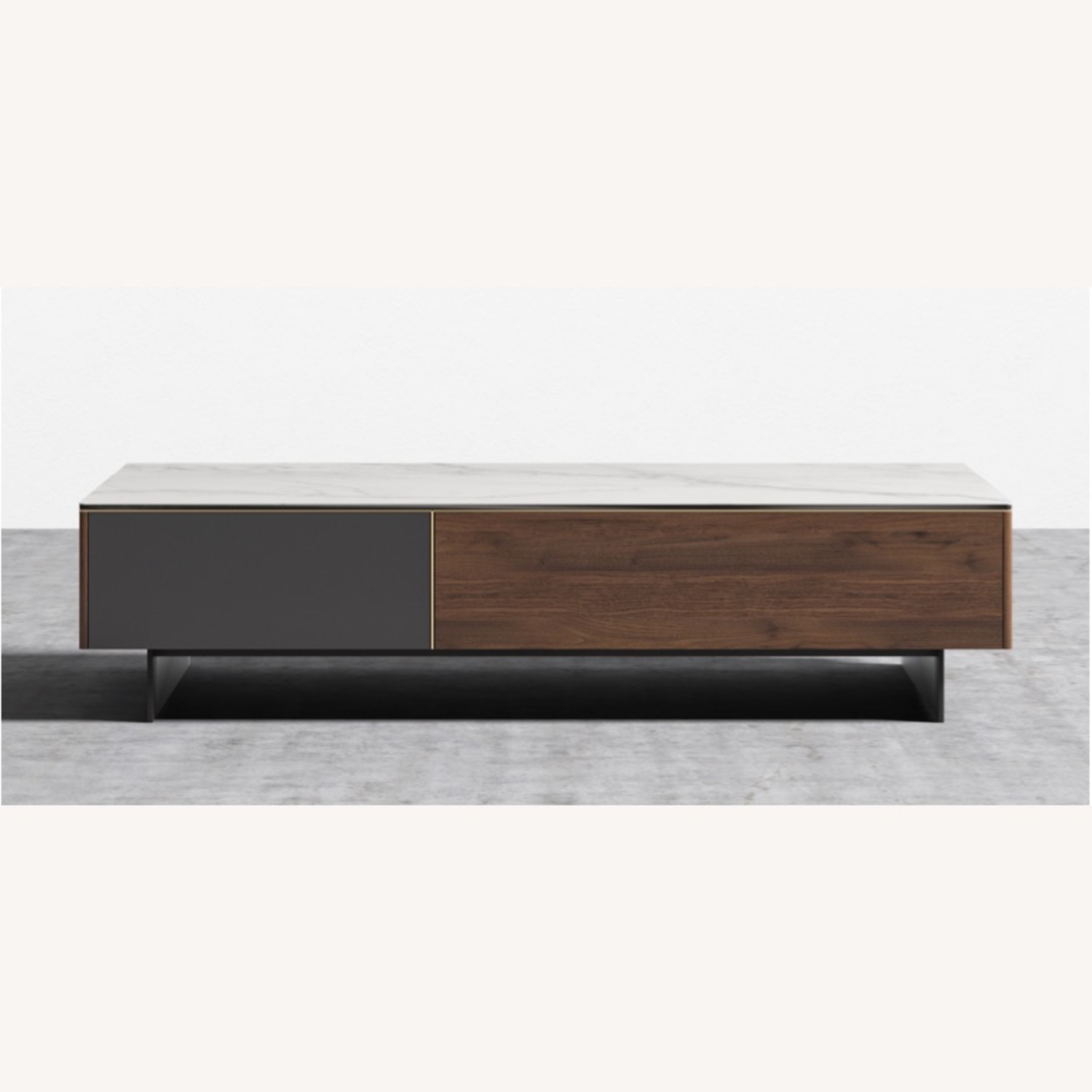 Seller's Notes:The Augustus collection anchors any space with its soft tones. The luxurious marble top is grounded with a black solid metal base. Featuring a sumptuously warm walnut veneer, delicate detailing and modern dark drawer fronts; the Augustus will add a touch of timeless elegance to any room.