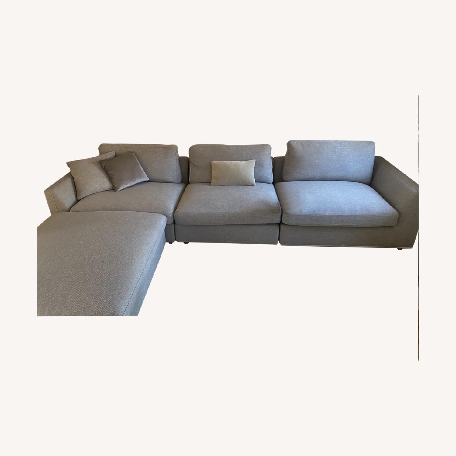 Seller's Notes:This sofa is a beautiful design piece. It's modular so all 4 pieces can be arranged as needed. For example, it is possible to use the outer sections to form a smaller sofa and use the middle section as a separate comfortable chair. The leg rest is also separate so it can go on either side of the sofa. The sofa is in really almost perfect condition, apart from one faint stain on the leg rest. The sofa is on the Upper East Side of Manhattan and the building has a freight elevator. The individual pieces are easy to carry with 2 people.