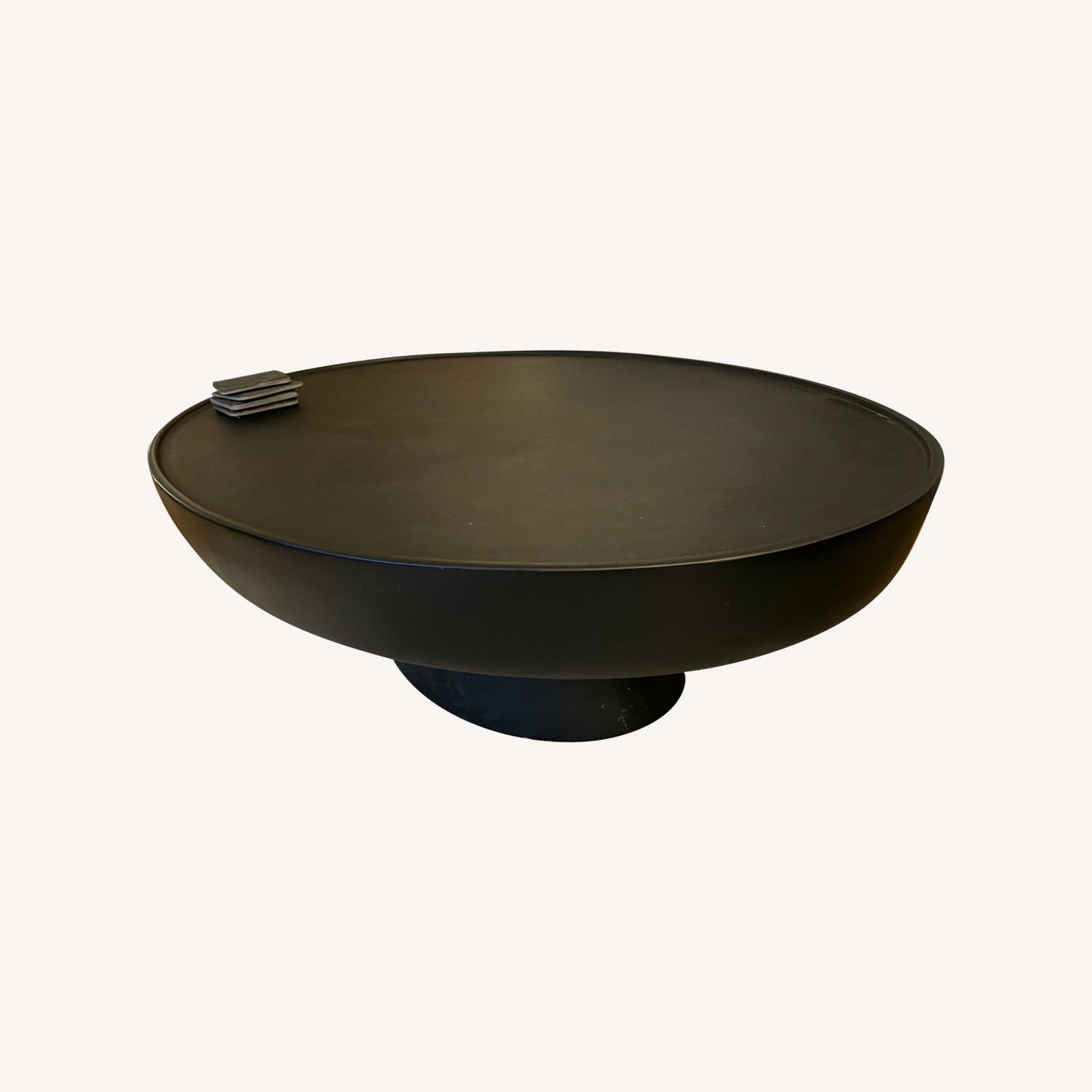 Like a statue in a grand space, this stunning coffee table stands out with its monumental design and sophisticated aesthetic. The soft curves crafted from concrete bestows a refined radiance upon the wide pedestal base.