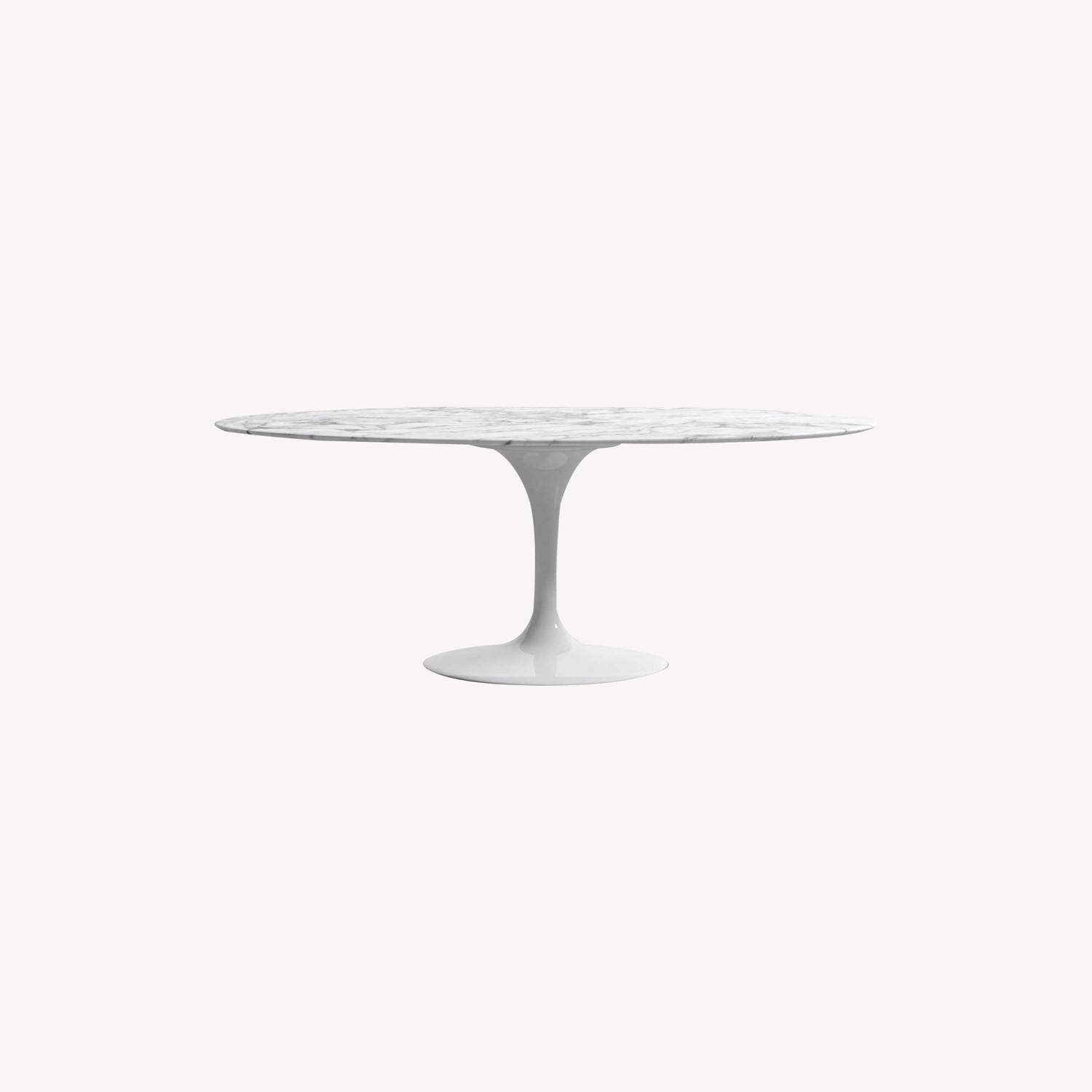 Seller's Notes:Brand new condition. Moving sale. HUGE DISCOUNT. Seats 8 comfortably. This premium Rove Classics reproduction features: White Carrara marble Finished with natural sealant Beveled underside edge Cast aluminum base with gloss finish Base has 5-step powder coat resistant to chipping Oval shape Assembly is required Diameter may vary by approximately 0.5" Natural markings may vary This item is not manufactured by or affiliated with the original designer(s) and associated parties.