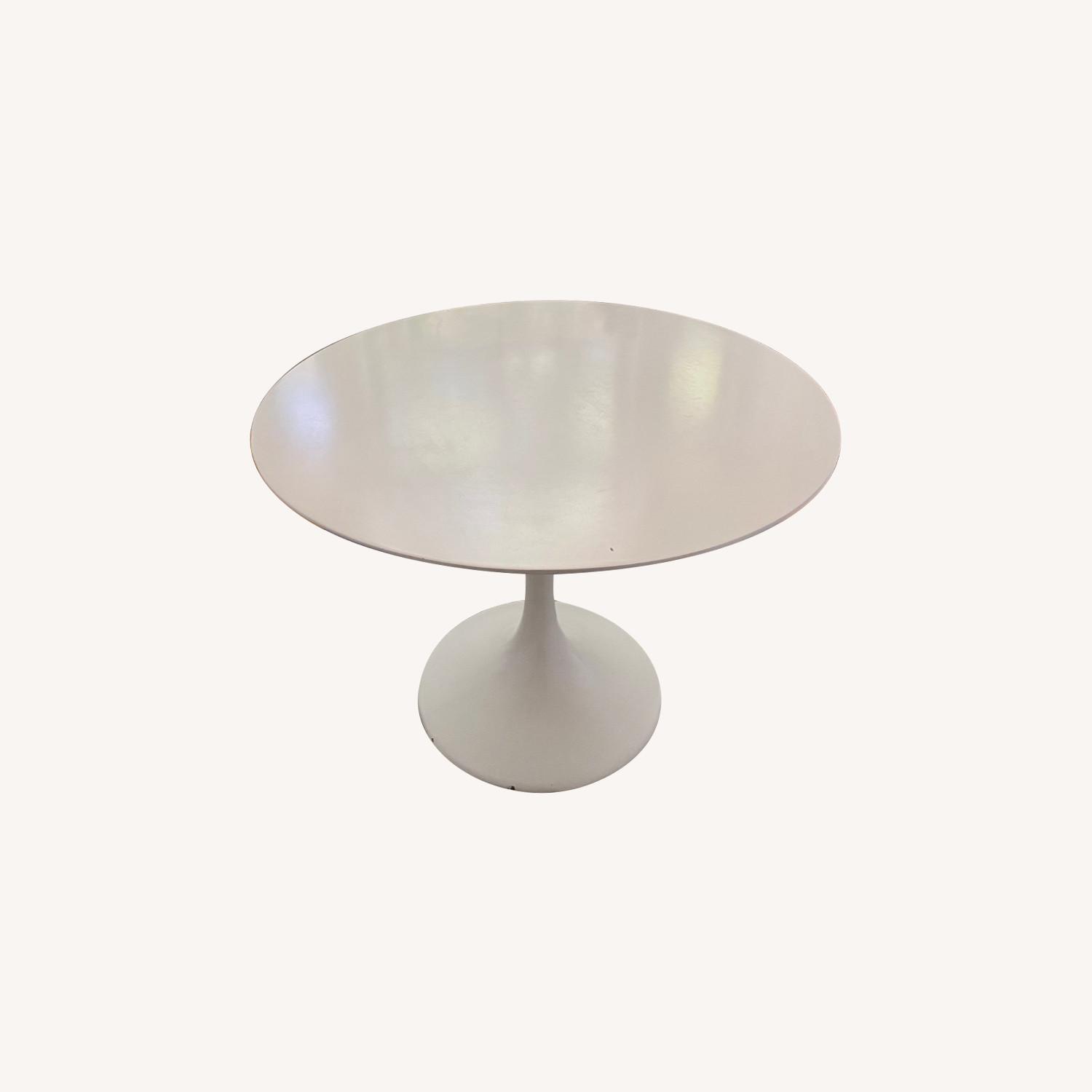Seller's Notes:I'm selling our 40" round tulip-style dining table. It is a few years old and has some wear, but it's stylish and sturdy table. This table normally sells for $600. 40" round 29" high Two very small nicks in the top from trying to cut pizza. (Dime in the photo for size) Small chip in the base from moving. Otherwise, this is a stylish and functional table. We just moved and it is too small for our current apartment.
