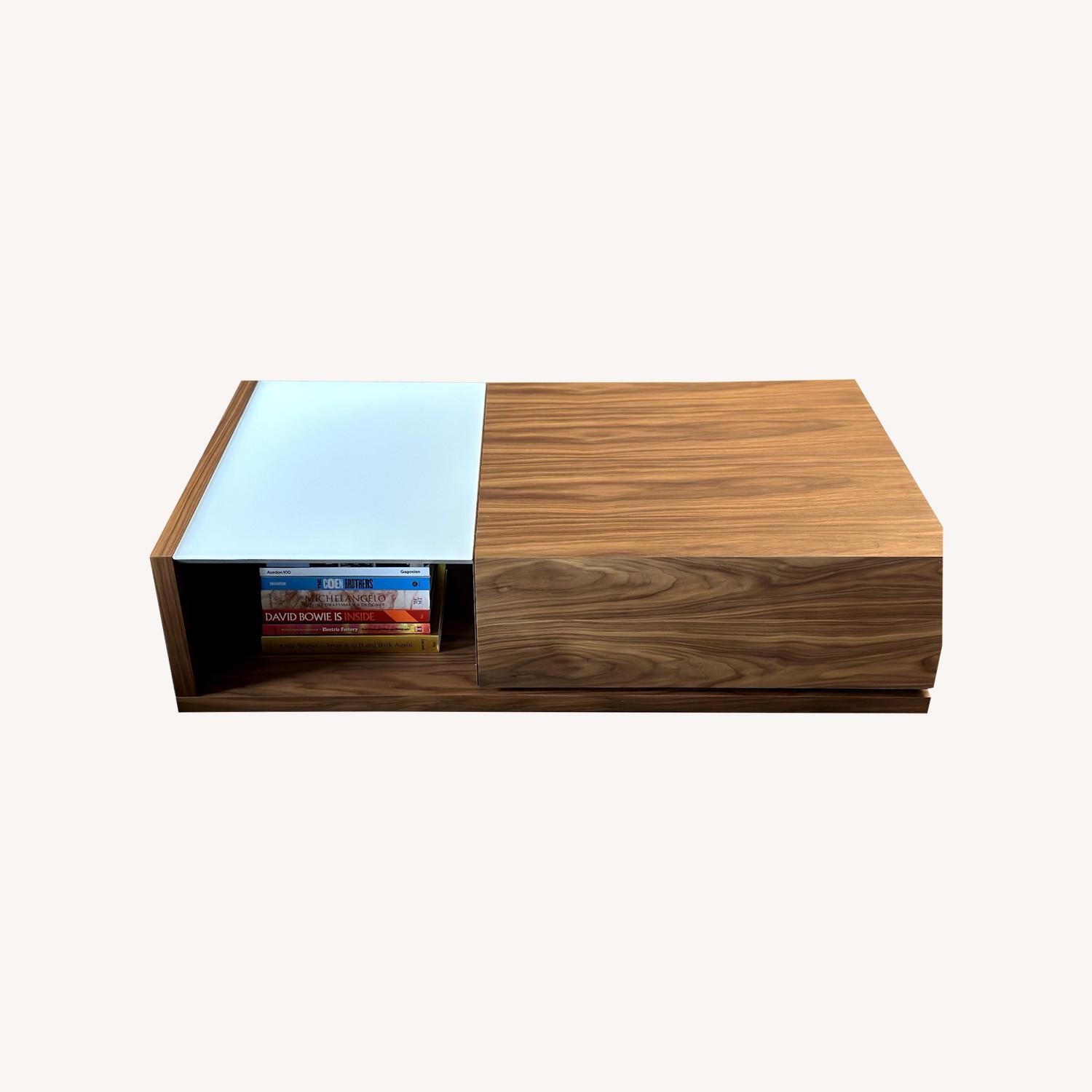 Seller's Notes:Excellent condition Truman Coffee Table from Rove Concepts. Modern styling with ample storage space. Great for any living room. From the Rove Concepts website: The Truman Coffee Table is a contemporary piece unlike any other. Its sophisticated, functional form includes sliding hidden storage while a clean table top is practical for everyday use and display. Made with a striking combination of durable materials, this coffee table is a smart addition to any modern home.