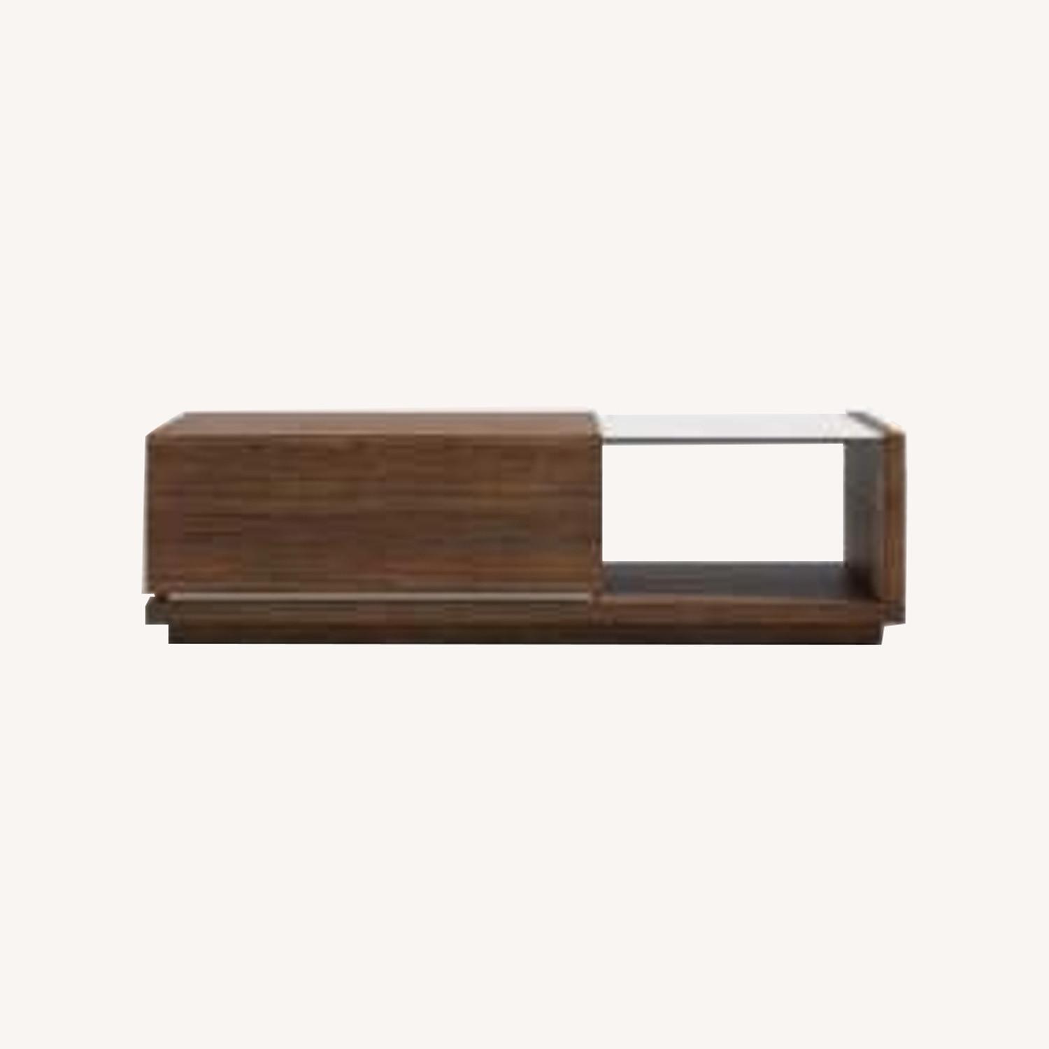 Seller's Notes:Luxury Truman coffee table from high end modern furniture company Rove Concepts. Save over 60% vs. the standard ~$2000 retail price. Provides a huge amount of storage in an elegant design. The beautiful real white marble top is striking against the dark walnut veneer and elevates any room. Unit is in great overall condition and ready to be picked up.