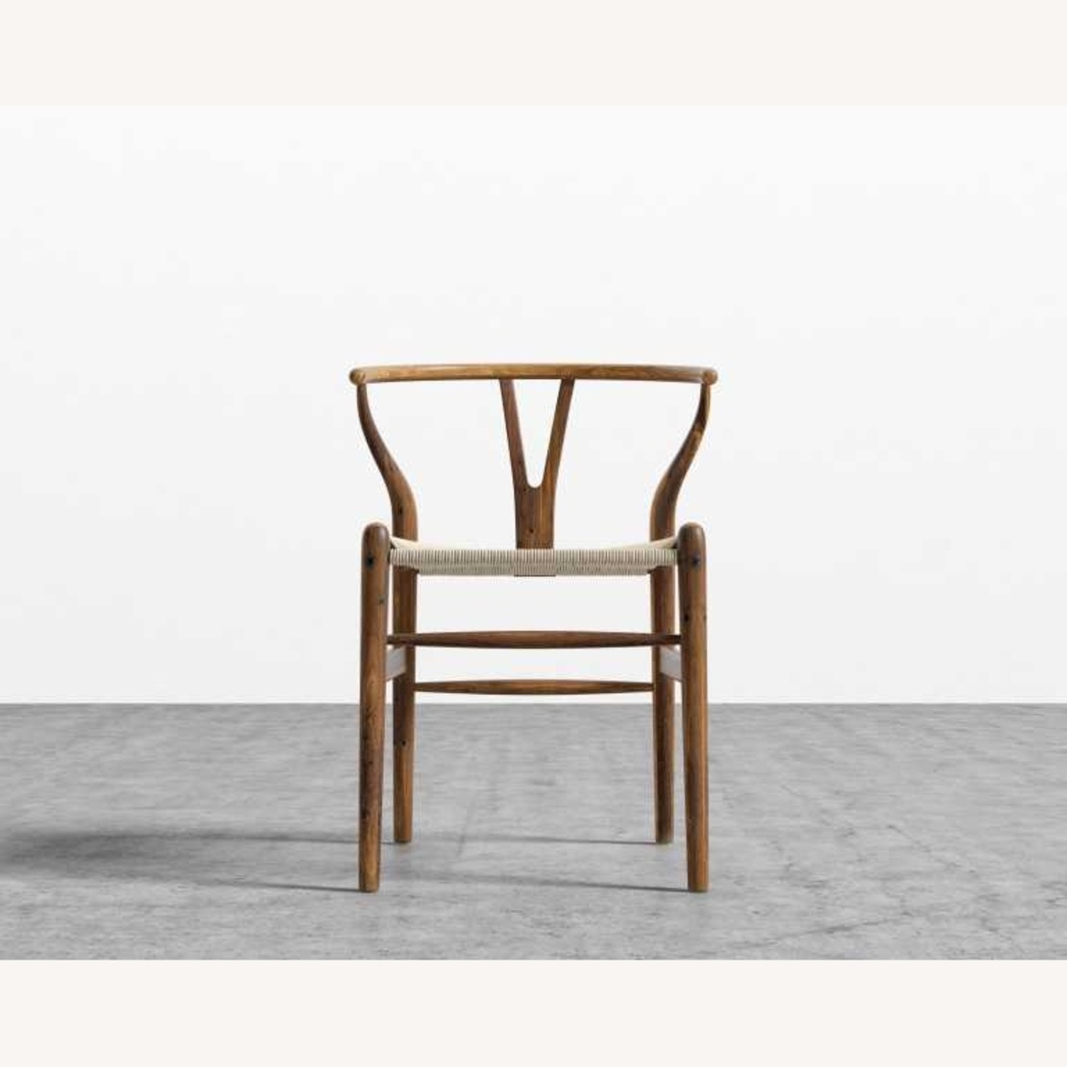 Seller's Notes:The Wishbone Chair is a premium reproduction of one of the most classic designs from the mid-century modern era. A rare combination of natural and practical, its misleadingly complex construction stems from the designer's extensive knowledge of wood. The fluid lines and minimalist style create an airy feel while the Y-back creates a truly organic impression. The curving top rail and tapered legs are stunning additions to the comfortably flexible yet sturdy woven seat.