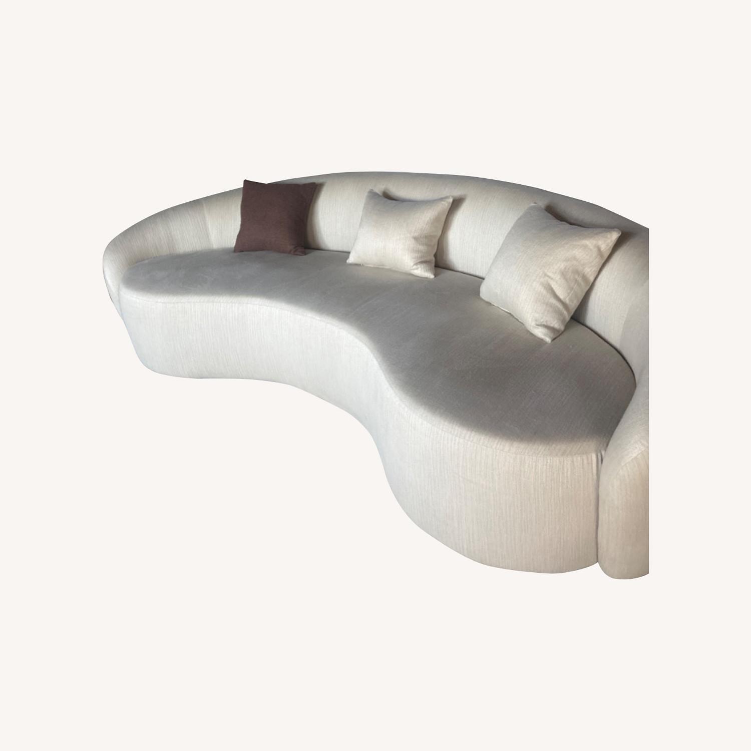 Seller's Notes:Beautiful curved sofa in the style of royere. Designed by a well known decorator . Elegant in Belgium linen