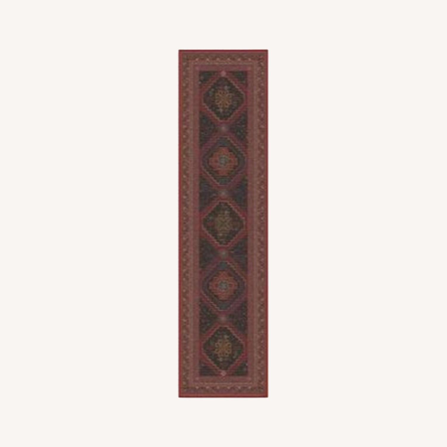 Seller's Notes:Zareen Oxblood Red Rug from Ruggable. Washable runner-size rug in a red and dark blue oriental-inspired pattern. Used this for a few weeks in our kitchen, but we changed our mind about the color scheme. Freshly laundered and in like new condition. Signature Ruggable cushioned rug pad included. Retail value is $229.