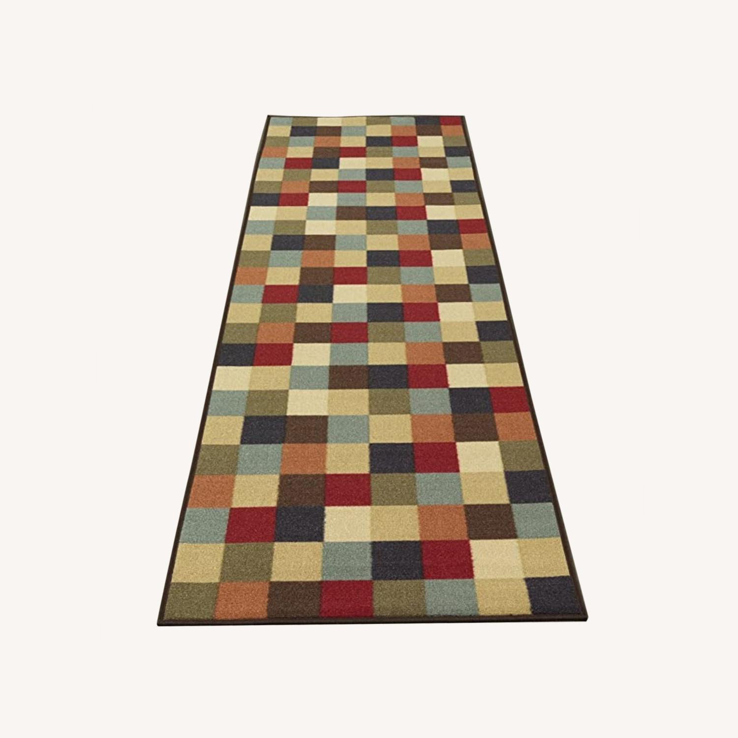Seller's Notes:Rug Form Type Runner Size 2'7" x 9'10" Product Dimensions 10"L x 9"W Color Multi Color Pattern Checkered About this item Nylon Imported Size: 2'7" x 9'10" |Pile: 0.2 in.|Color: Multicolor Material: Nylon | Rubber Backing Machine Made in Turkey | OekoTex Certified LOW PROFILE: These rugs are produced with a thinner profile to avoid trip hazards for your pets and loved ones. Low profile rugs allows for a seamless transition of your cold floors to a warmer space. Care Instructions: Vacuum regularly and spot clean with damp cloth, DO NOT machine wash. DO NOT use strong liquid cleaners or hot water.